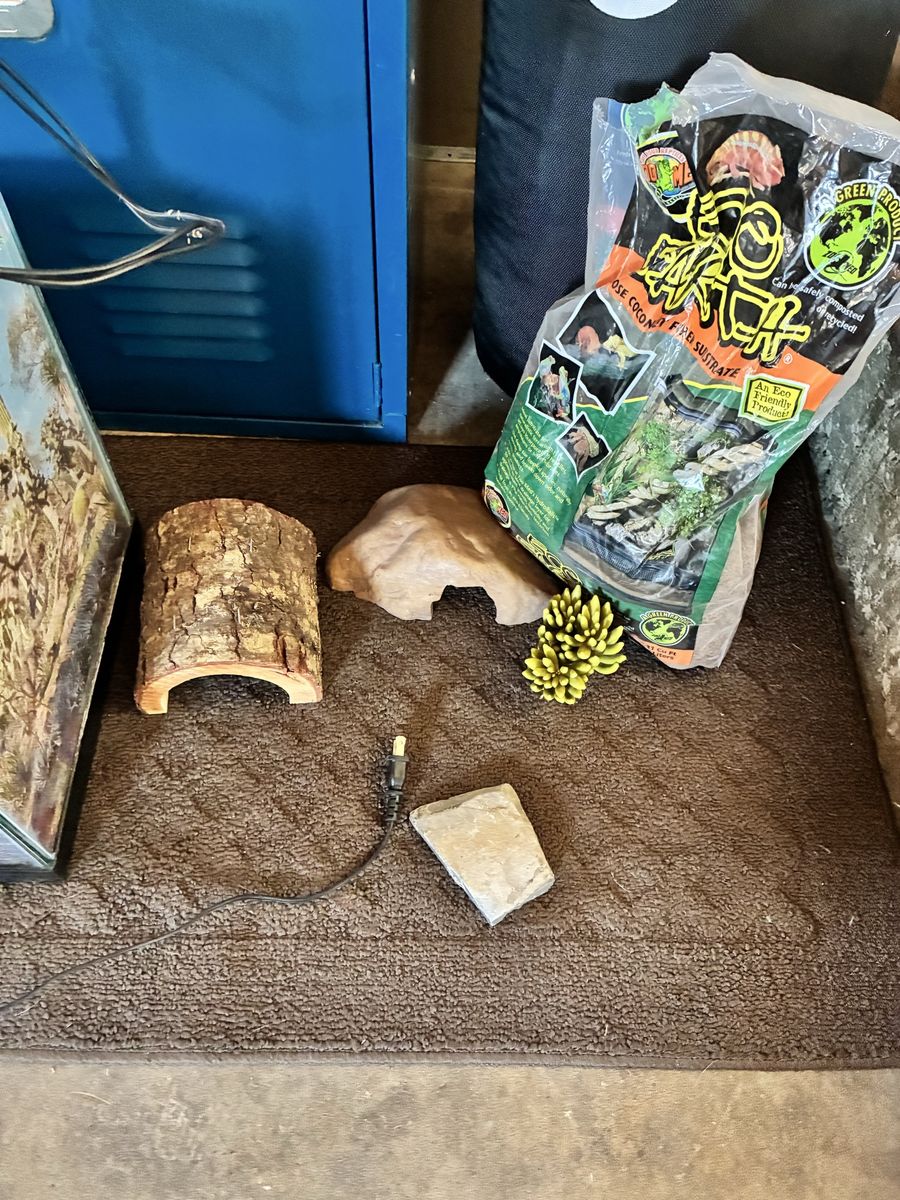Venmo29 gal tank Includes lamp (one bulb needs to be replaced) Rock Back of loose coconut fiber Asking $40 pick up Clearfield Cash or Venmo
