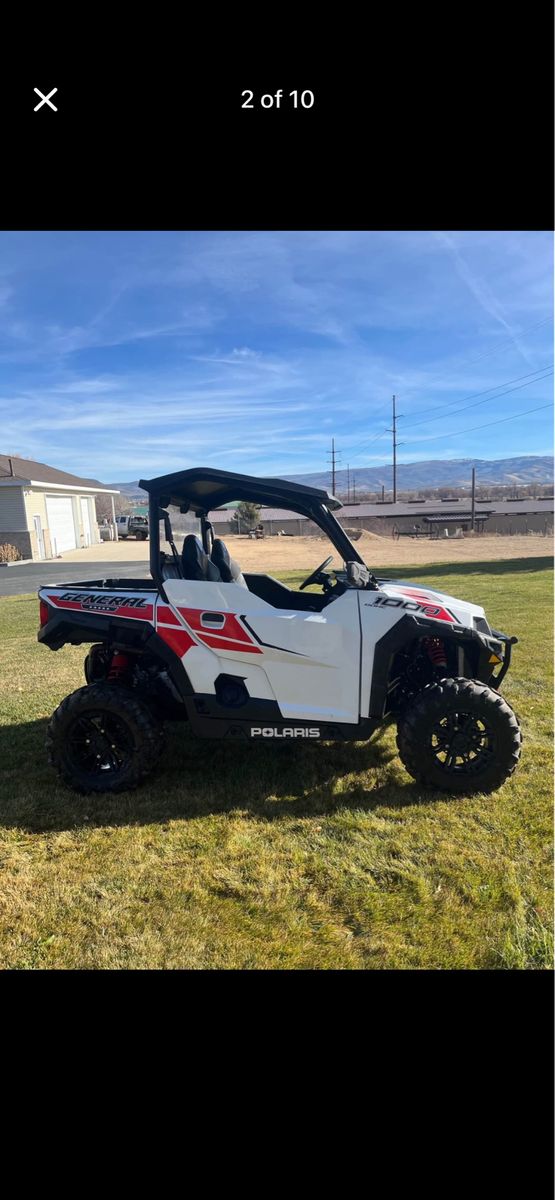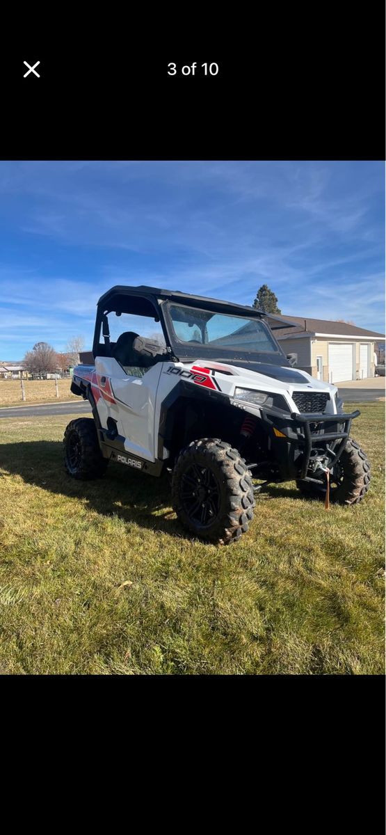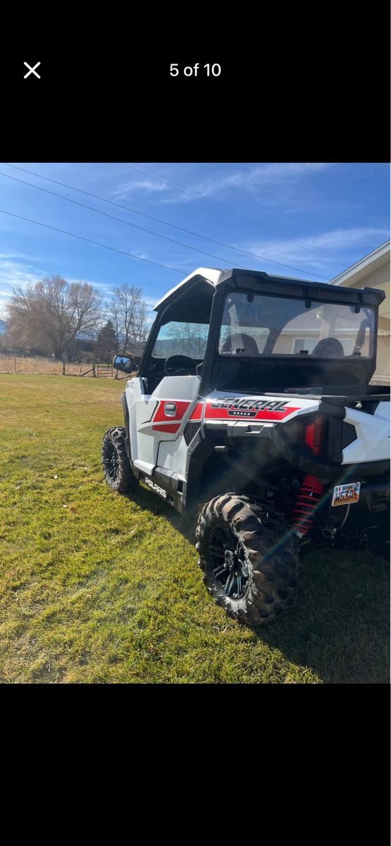 2017 Polaris general. Selling for my grandpa. He doesn’t use it at all so it’s time for someone else to enjoy it. Been stored inside since new. Only has 1700 miles on it. Has a nice winch and good tires. Only problem is the paint got scuffed up on the tailgate from the ramp on the trailer. Asking 10,000. Text with any questions.