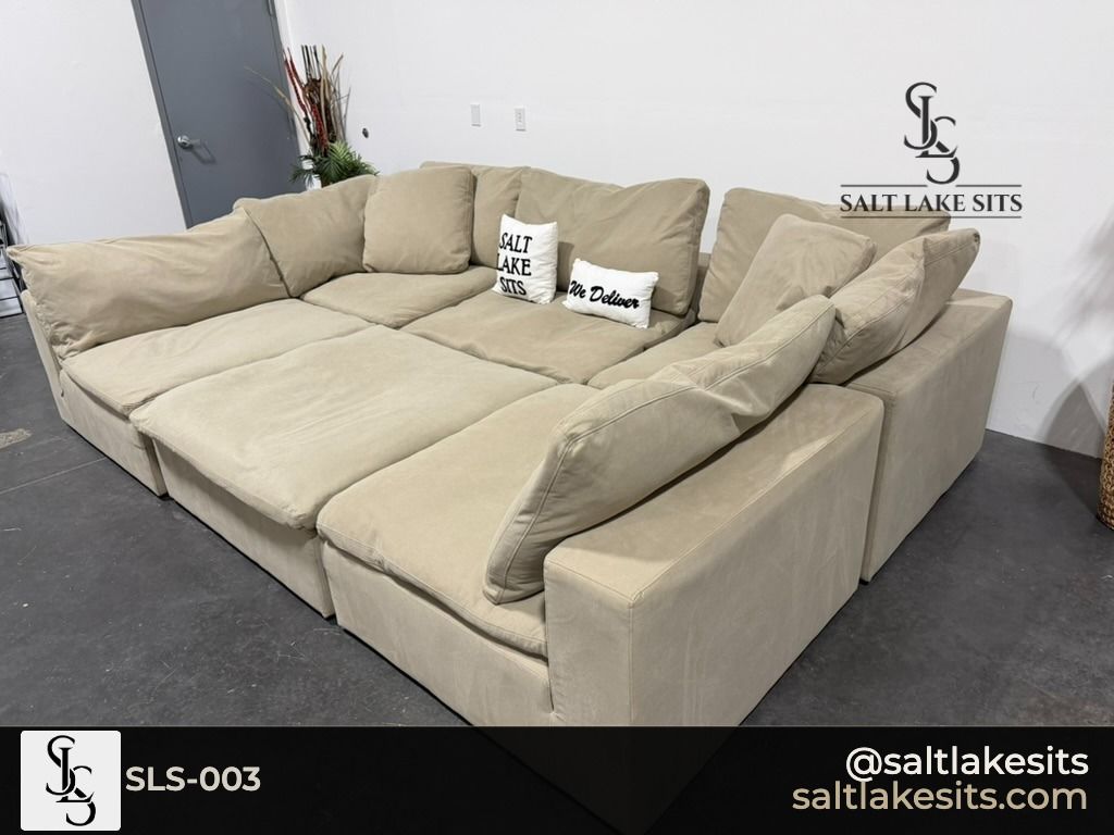 Retail: $3,500 | Your Price: $1,400 Down East Cloud Modular Luxe — 6 Piece Set in Cream Tan. This is the couch everyone wants right now. Incredibly deep, cloud-like cushions that practically swallow you whole. Fully modular — configure it any way that works for your space. Professionally cleaned, great condition. Dimensions in photos. Same day delivery available throughout Salt Lake City. SKU: SLS-003