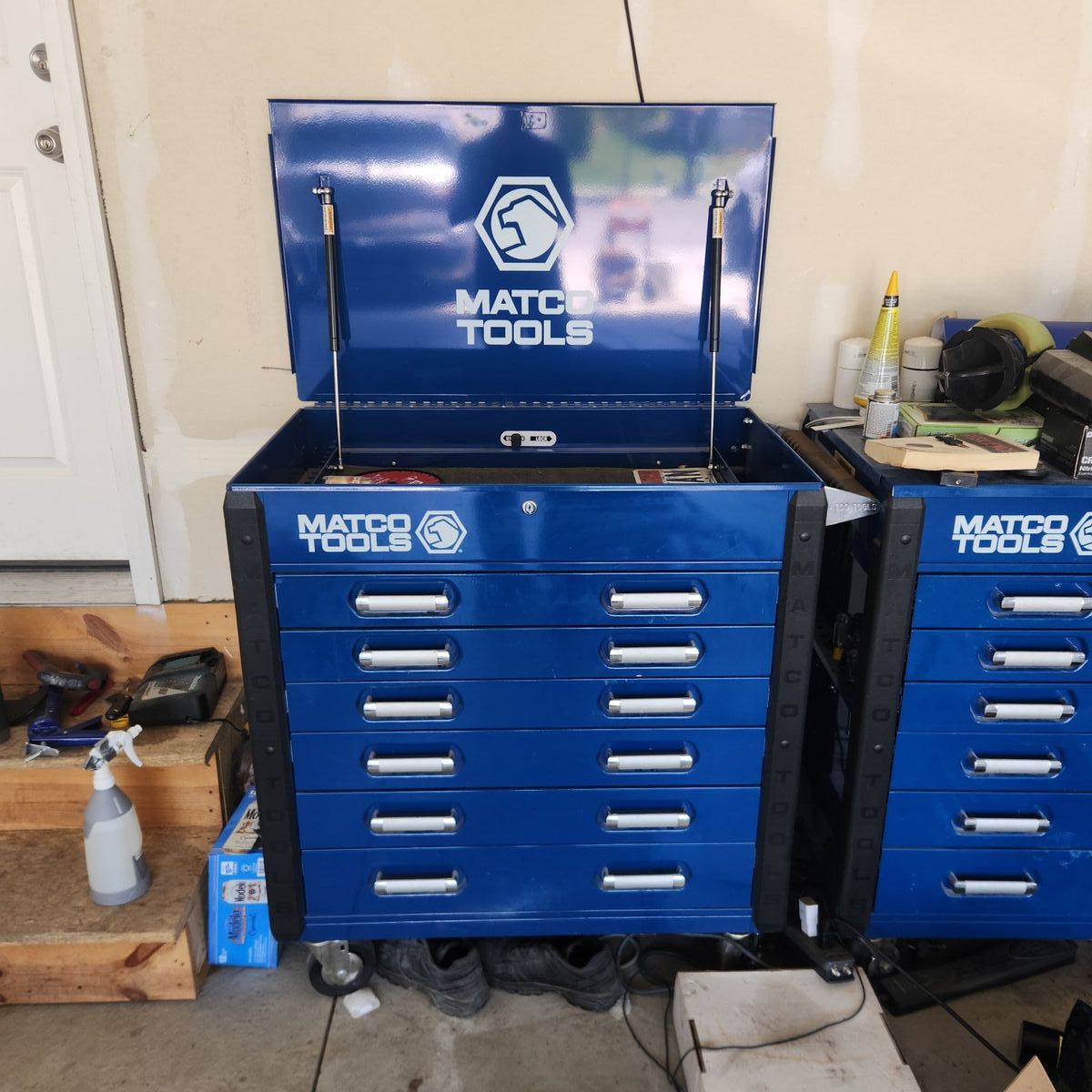 I am selling TWO Matco rolling tool boxes. These sell for around $1800 new. These are used and have some light scuffs on top but are in otherwords great shape for tool storage. Should have one set of keys to each. Asking $800 each or $1500 for both. I am selling because I need a single larger toolbox. Dimensions are approximately 20" deep 35" wide and 36" tall. I am firm on price. Text me with questions!