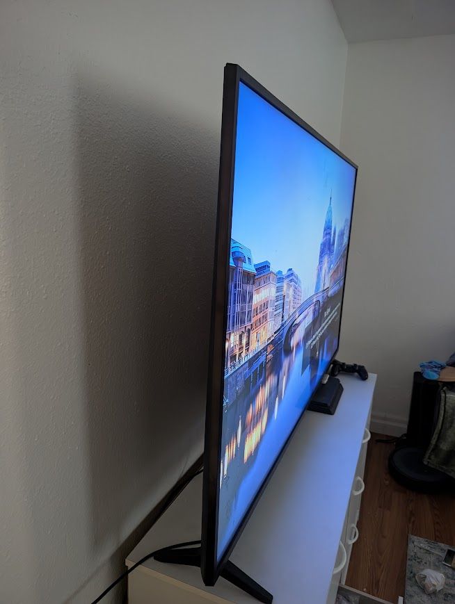 OBO 65" Works great, never had any issues. The remote works just fine but is cosmetically damaged and comes apart if dropped. Cash only.