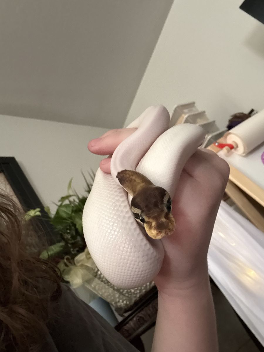 He is super sweet. He eats small frozen rats. He does strike eat. He has regular poops and shed. He’s in a 40 gallon there’s water spots on it. He will come with bedding and everything I have with for him.