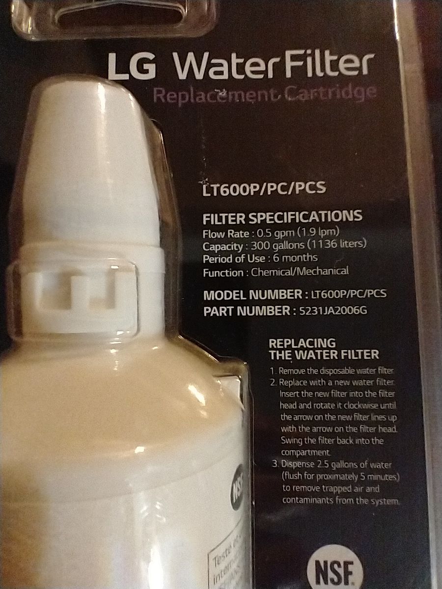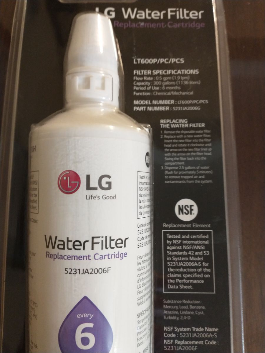 LG LT600P refrigerator water filters. These are brand new in factory sealed packaging. The price for these filters on LG’s website is $54.99. I bought six of them on a closeout, used one, then my refrigerator died. I will pass the savings on and sell them for $20 each or all five for $85.