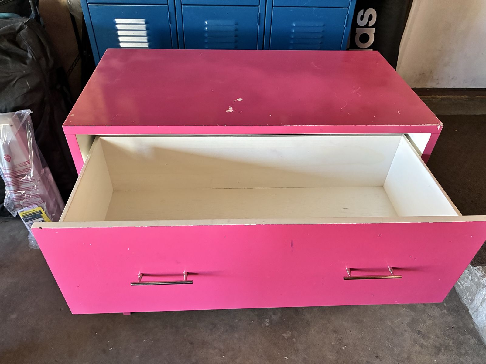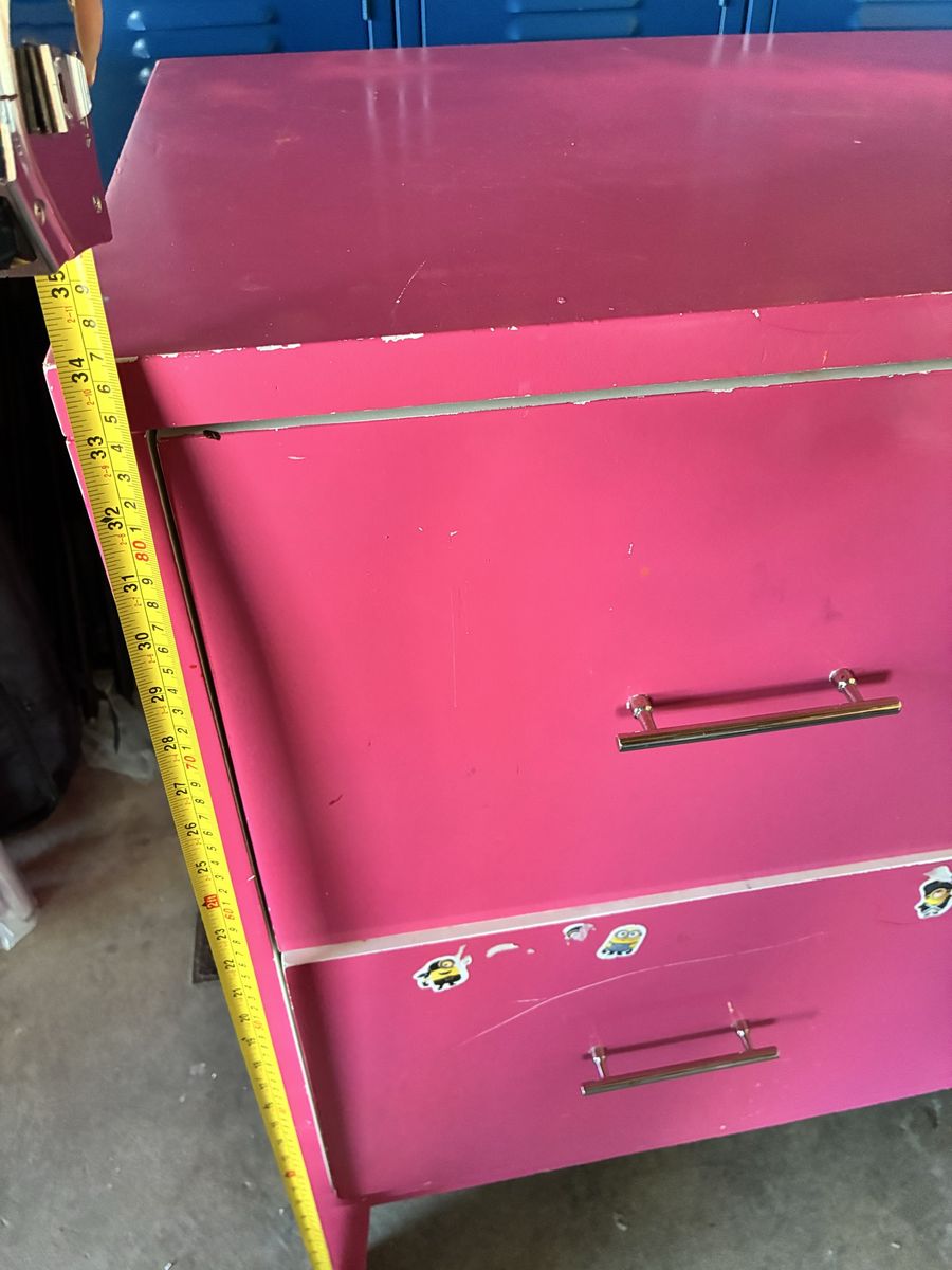 Asking $20.00 cash or Venmo Well used bought for my daughter years ago painted it pink. Great piece for furniture flipping or customization for your home. If this isn’t gone by Sunday 4/26 it’s going to the dump we need the space Top drawer works great soft close bottom drawer opens and shuts not as smooth. Dimensions in photos. Pick up Clearfield Utah Thanks for looking.