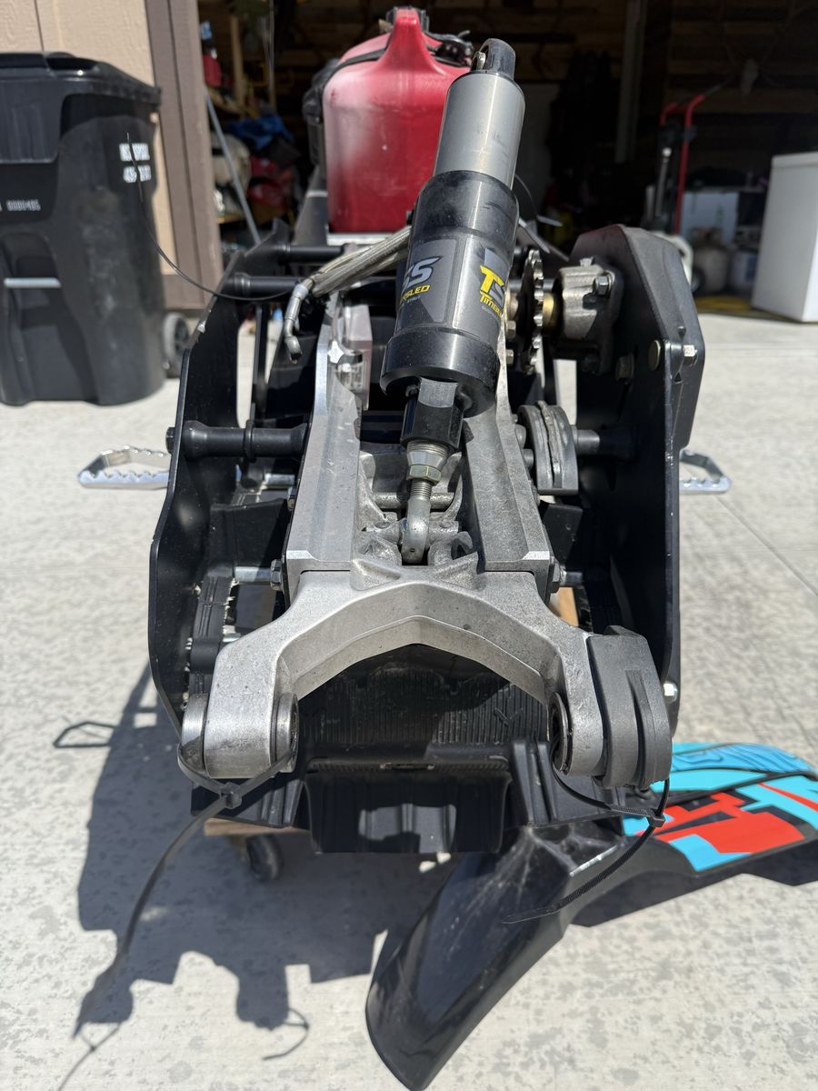 2019 Timbersled Aro 120 with fox shocks for sale. It currently has a KTM fit kit on it. Fastway wheelie pegs NOT included. Gas can and storage box included. If you don’t lowball me I’ll throw in the TSS shock. No missing lugs on track. I can throw in the fender and number plate if you want to match the wrap a little bit. Also have a few more wrap pieces for the tunnel that I never put on because I already had the Jerry and box on there. Or you can just strip it. Whatever you’d like! It’s currently geared lower for more bottom end power in the creek bottoms and tight tree exploring. It’s easily changeable if you want to go fast and get some more top end in the flats. Just have to flip the sprockets in the chain case. Text your questions. I’ll try to update this if I forgot anything. Thanks!