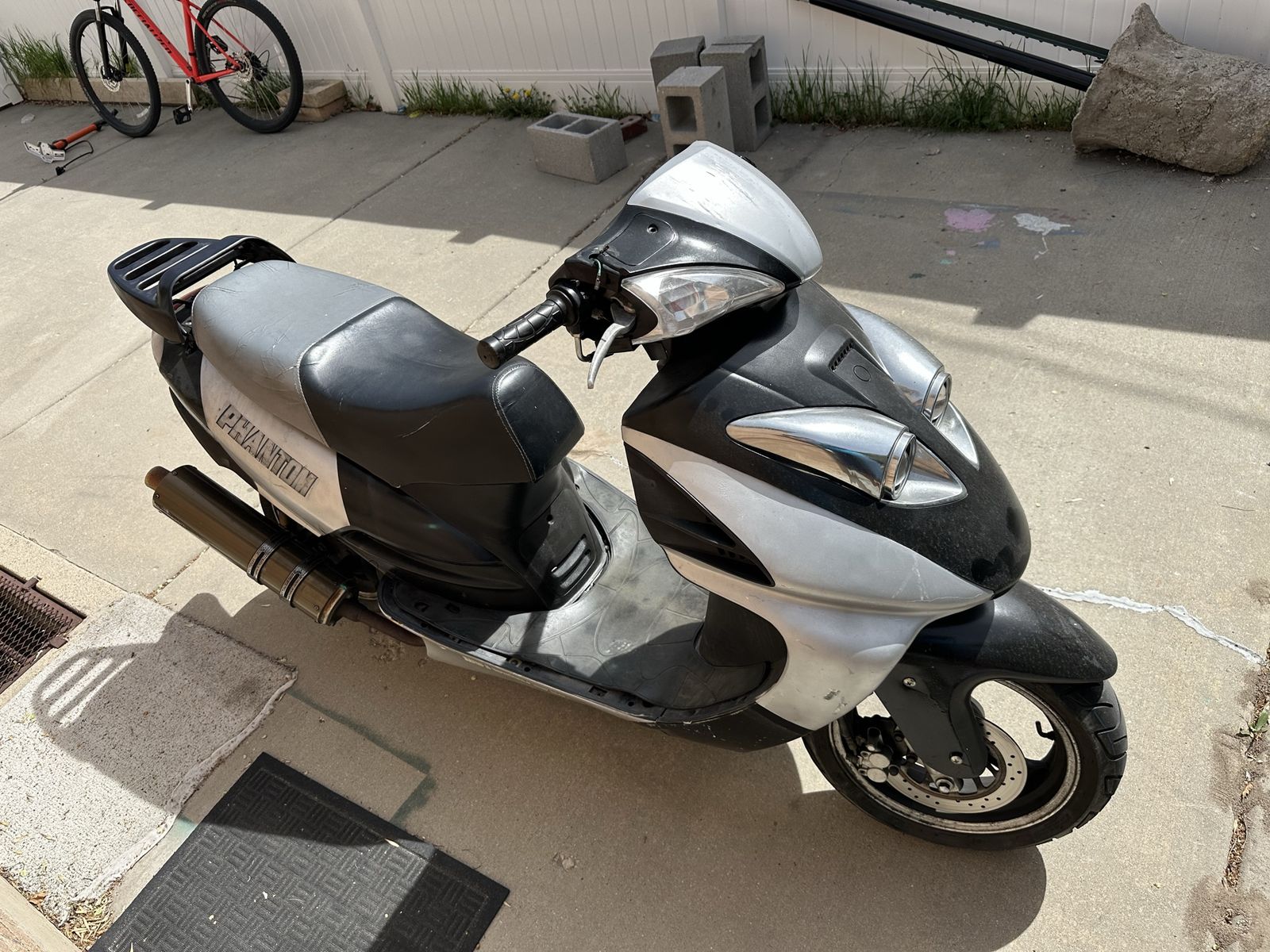 Runs perfect 25-35 mph top. 150cc No title Brand new battery. Headlights are out but all other lights work. Odometer doesn’t work all the time.