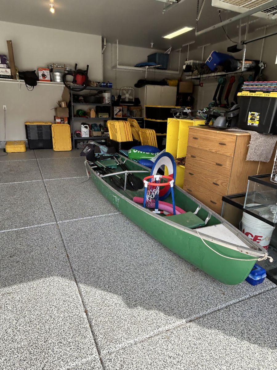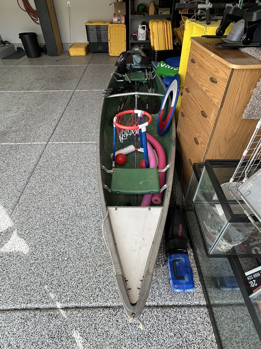 This canoe does show some normal wear from age and has a bit of flexibility typical of older models, with a bit of wobble at times, but it’s still fully functional and ready to go