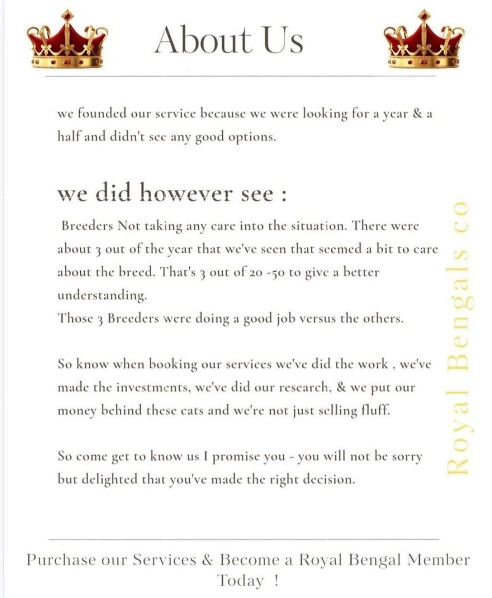 WE STRIVE TO GIVE YOU OUR BEST THANK YOU FOR ADOPTING WITH ROYAL BENGALS co !