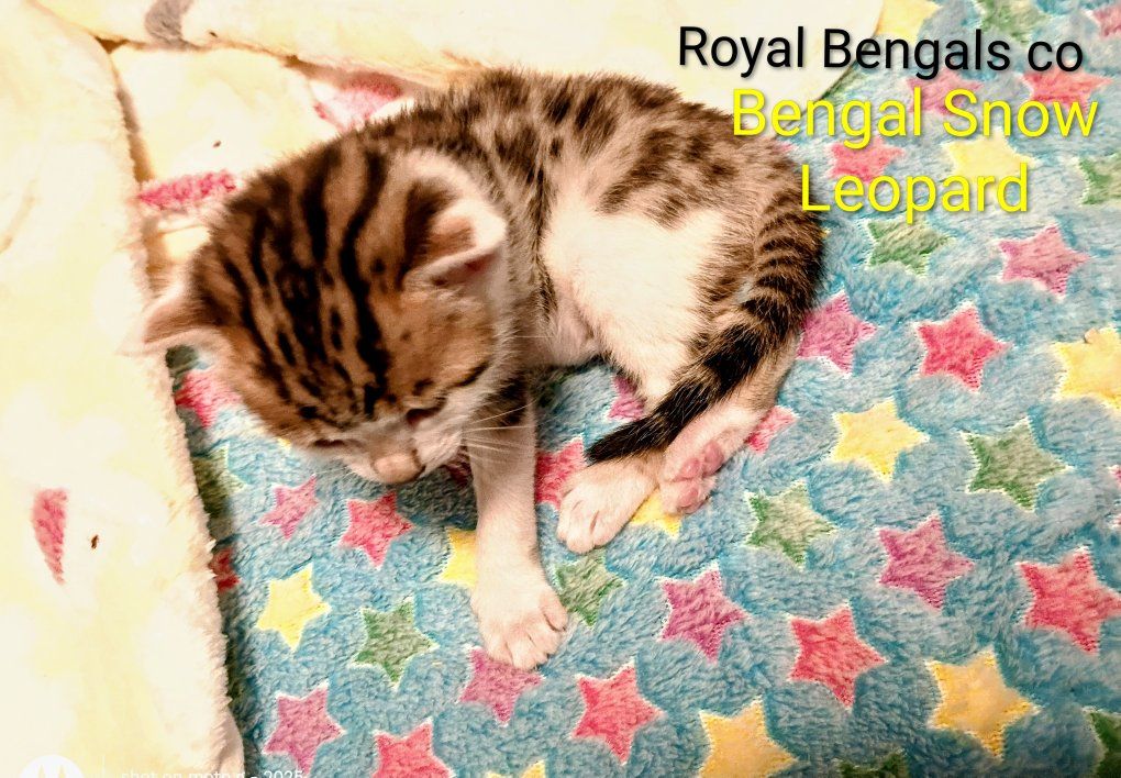 This exclusive offering: Is strictly for the elite collector seeking a One-of-a-Kind Designer Hybrid. This animal represents a pinnacle of genetic exclusivity, manifesting a visual phenotype that is a true biological rarity. This is not a standard breed specimen; it is a One-of-a-Kind Designer Hybrid defined by a 1-in-1,000 "Mosaic" expression that cannot be intentionally replicated. As a One-of-a-Kind Designer Hybrid, this snow bengal litter features a breathtaking vertical-split aesthetic,Snow & Lepard. The striking contrast between the brilliant, solid-white coat on one side and the high-definition, multi-toned leopard spotting on the other creates a "living masterpiece" effect. This specific "half-and-half" vertical distribution is a rare genetic anomaly, making this Bengal cat & litter singular. One-of-a-Kind Designer Hybrid that stands apart from any traditional breed standard. In the world of exotic pets, many seek the standard, but few can acquire a One-of-a-Kind Designer Hybrid of this magnitude. Its existence is a unique intersection of rare genetics and high-contrast artistry.