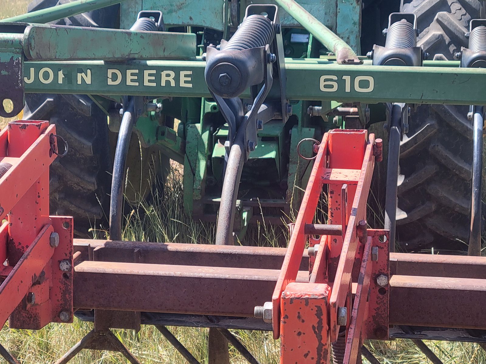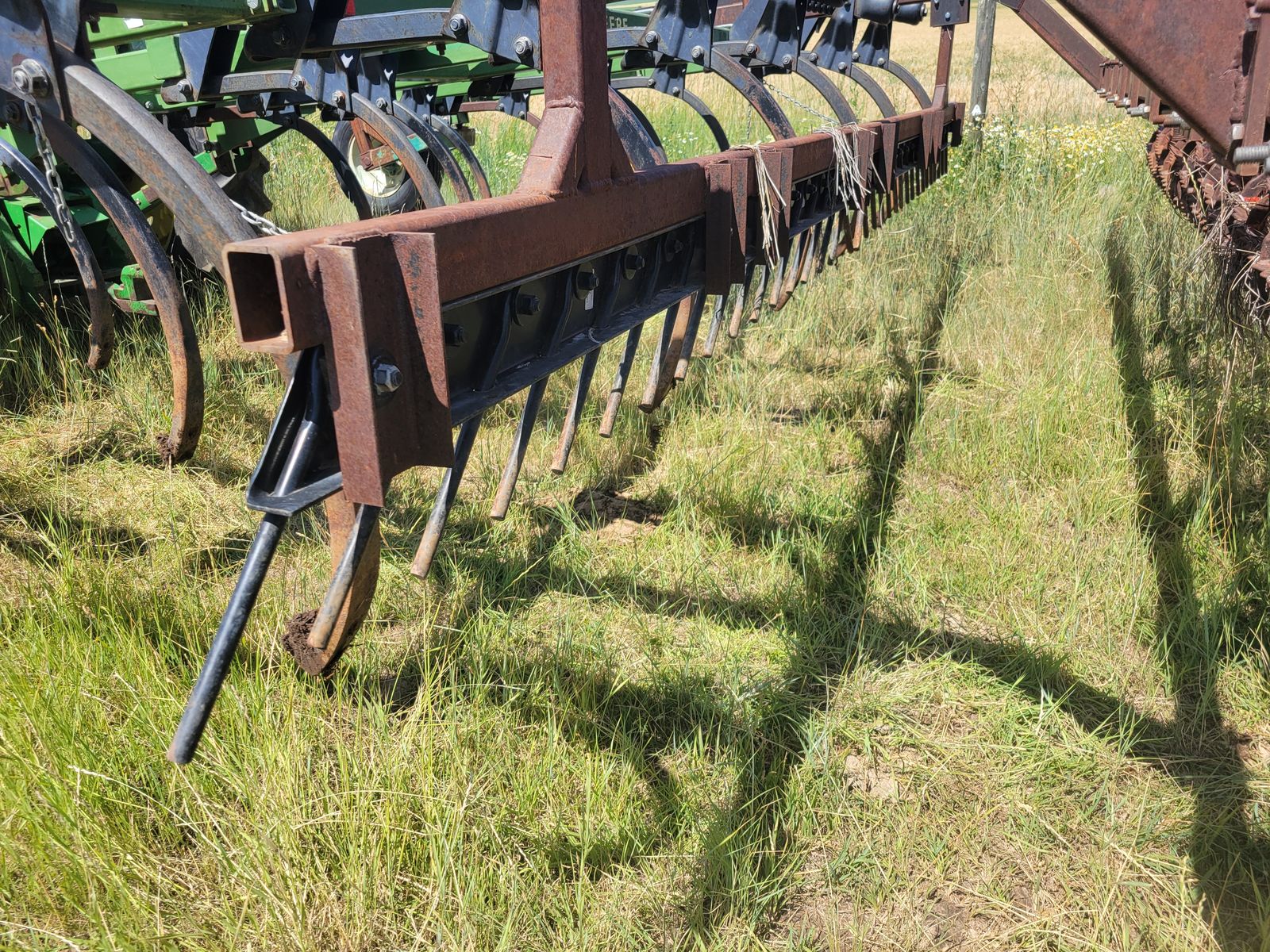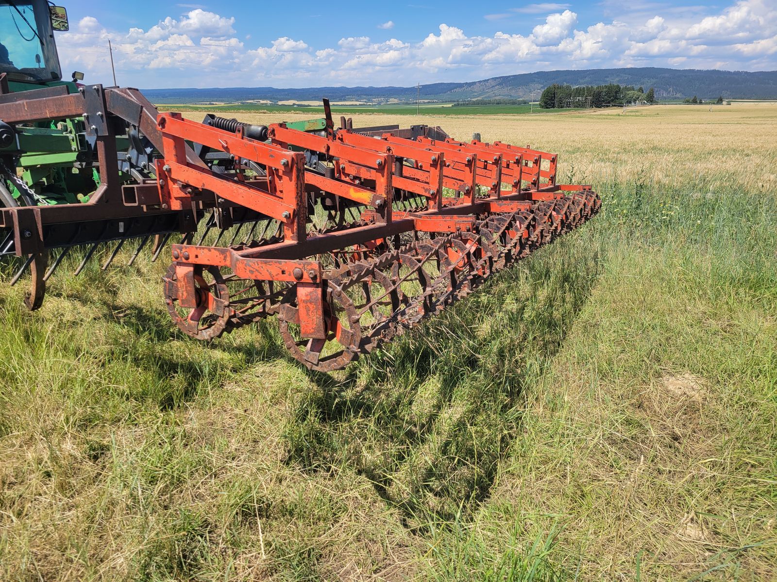 16' John Deere chisel for sale. This unit is a 3 point mount model. It has a floating harrow bar and two rows of rolling baskets behind, which can be removed if so desired. There's no points or shovels on this chisel at this time. $5000, please call or text Mark at 2o8-351-389three