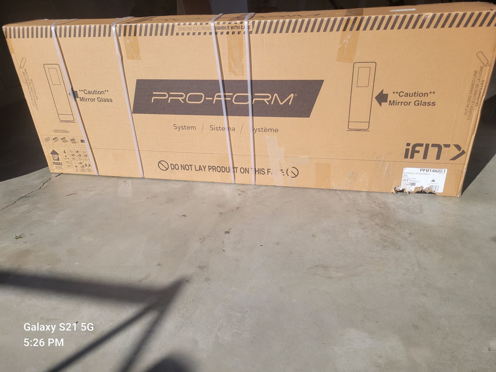 I've got a brand new Pro-Form iFit mirror still in the box. Never been used or taken out the box. Been sitting in storage for a couple of years. The box is damaged due to my puppie chewing on the corners.