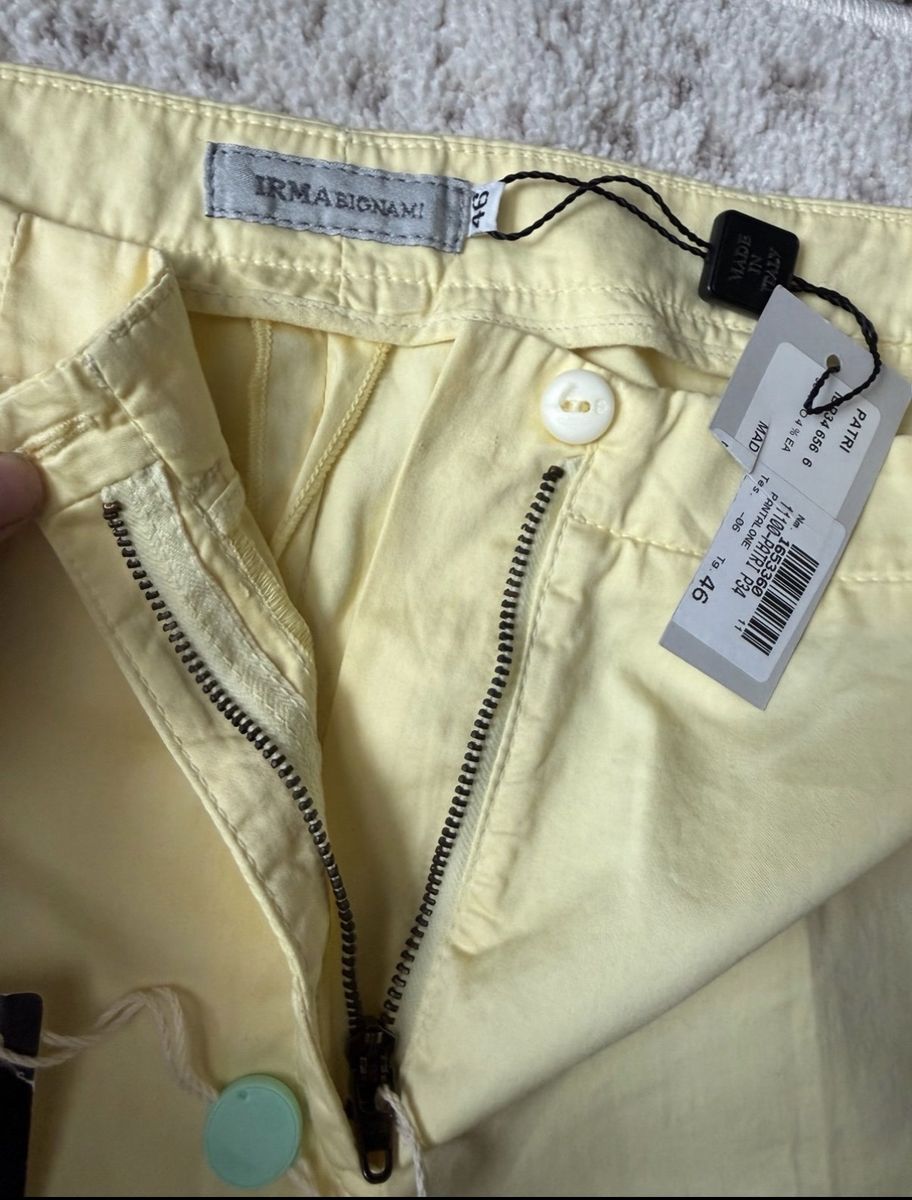 NWT Irma Bignami size 46 96% cotton sunny yellow straight summer patri pants Made in Italy