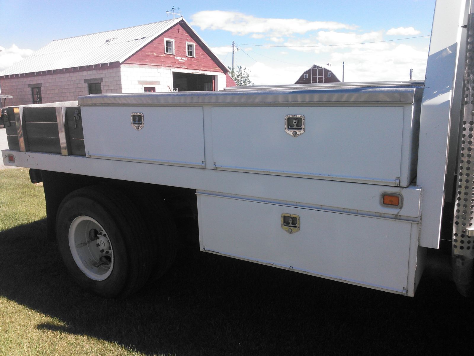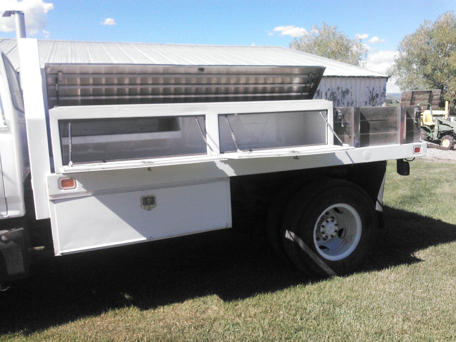 Utility service body for sale. This bed would be great for a farm service truck or a mechanics rig. This bed has 4 toolboxes on top and two underneath. This bed is best suited a cab and chassis truck (F450, 4500 and up) as it's approximately 12' long. It has been removed from the truck in the pictures.