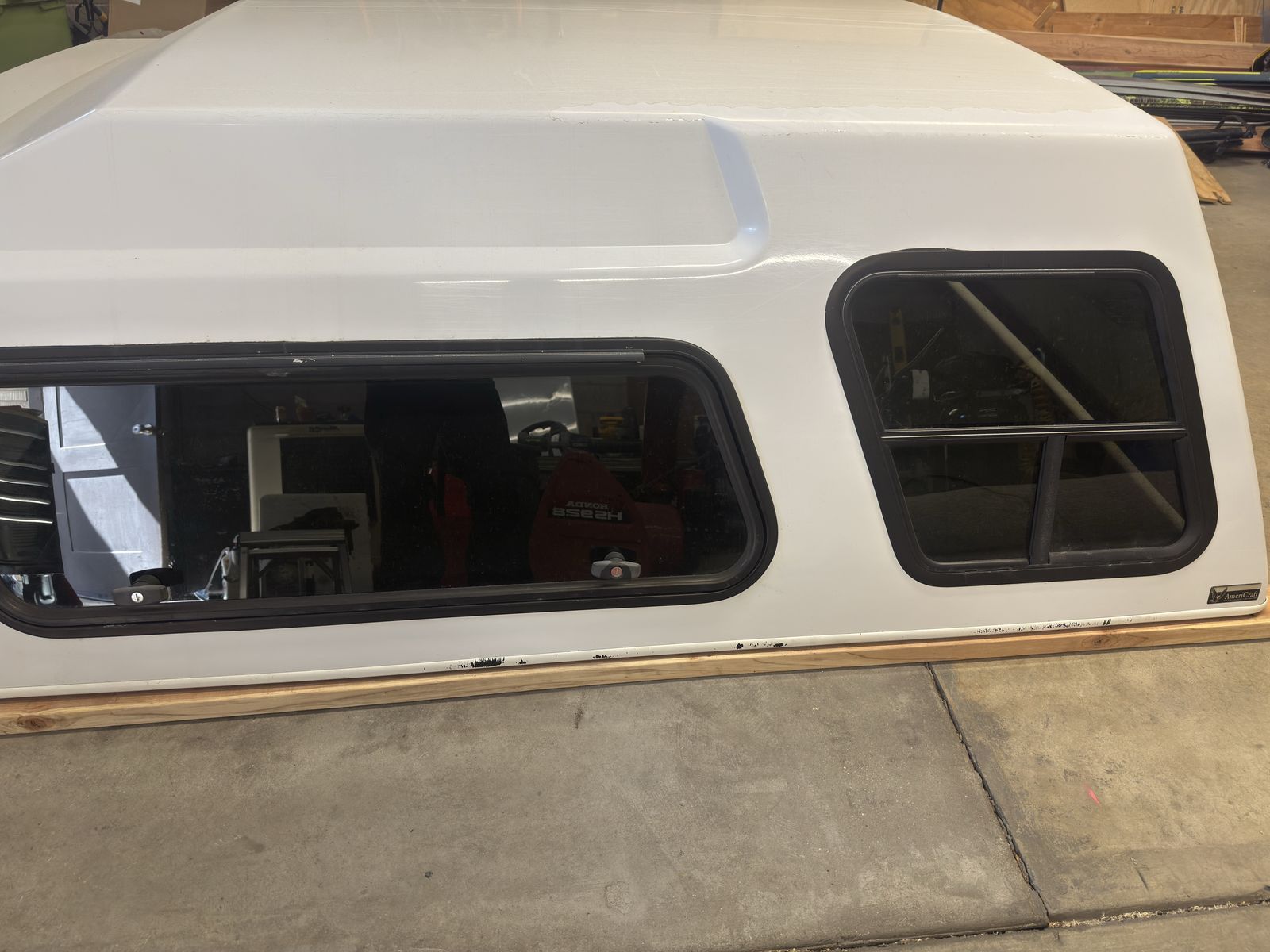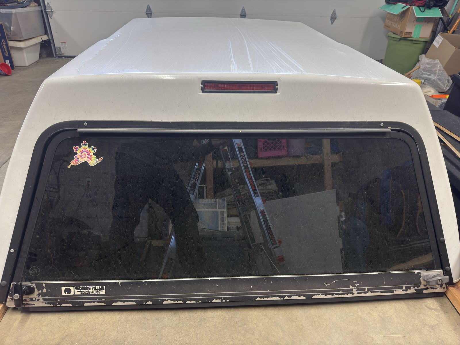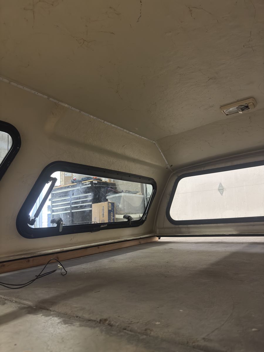 Functionally in good shape. The clear coat is peeling, there are some scratches, and it is around 14 years old. All 6 locks are keyed alike. Currently 1 will not lock and likely can be cleaned/ lubed. The rear and passenger side gas struts are strong. The driver side is wearing and needs help when it's cold. Third brake light works, the original dome light does not, but I have installed led rgb string lights. All glass is good, including 2 windoors, 2 mini sliders, and rear lift hatch. Clamps included.