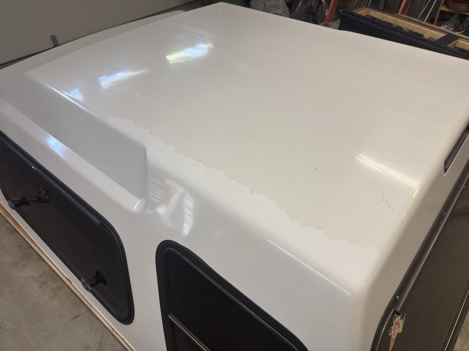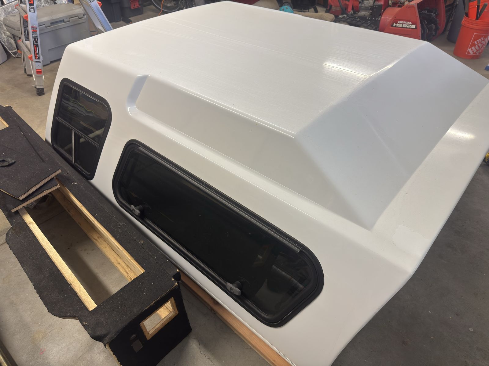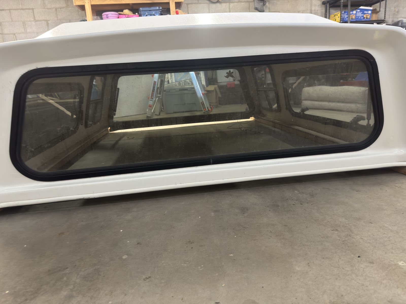 Functionally in good shape. The clear coat is peeling, there are some scratches, and it is around 14 years old. All 6 locks are keyed alike. Currently 1 will not lock and likely can be cleaned/ lubed. The rear and passenger side gas struts are strong. The driver side is wearing and needs help when it's cold. Third brake light works, the original dome light does not, but I have installed led rgb string lights. All glass is good, including 2 windoors, 2 mini sliders, and rear lift hatch. Clamps included.