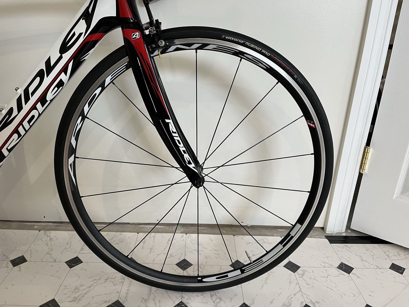 VenmoGetting serious about road cycling and don’t want to break the bank? I got this awesome bike for sale to get in amazing world of cycling. Specs: Ridley Noah RS Aero Carbon frame size 51 cm (Man’s Small) Shifters: SRAM Rival double tap, mechanical F/R derailleurs: SRAM Force Crankset: SRAM Force power glide compact 10/34 T Cassette: SRAM 10 speed Brake Set: SRAM Rival rim brakes Handlebar: Easton carbon EC70 Stem: 3T ARX alloy Seat Post: Ridley Aero Carbon tear drop. Wheel Set/Rotors: HED. Ardennes LT Tires: Vittoria Rubino Pro 700x25, tube clincher Bar tape: ENVE Bottom Bracket: BB30 Weight: 16 Pounds Asking for $1375.00 dollars or best offer.