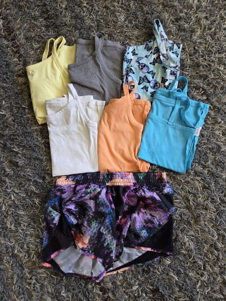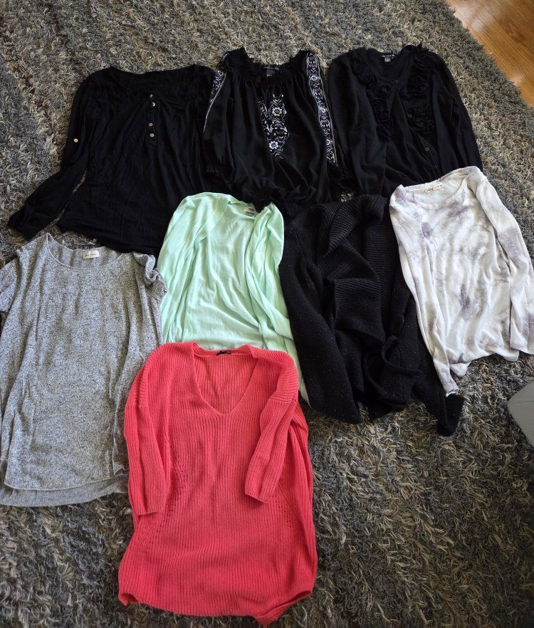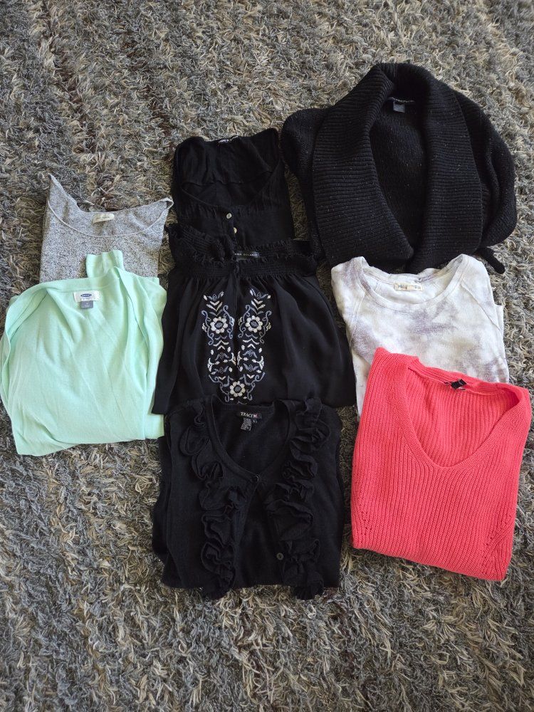 pants range from size 4-6, tank tops medium, shorts 4-6, shirts and sweaters medium and some large, $60 for everything, cash only, pick up only