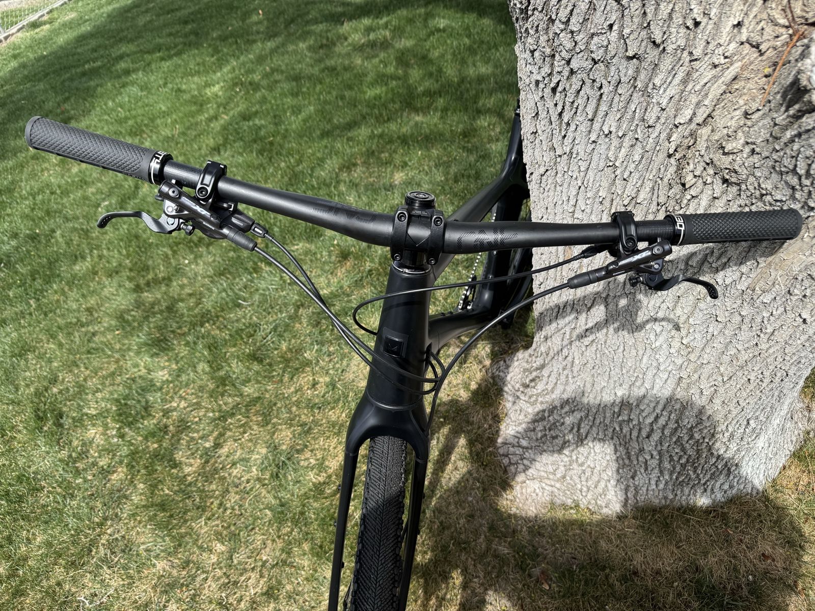 Handlebars: OneUp Carbon Bar, 760mm, 20mm Rise