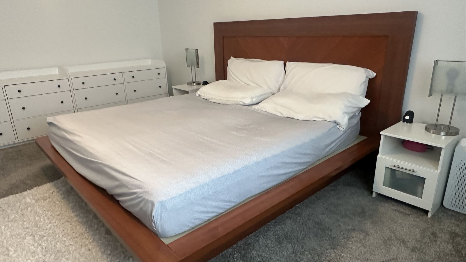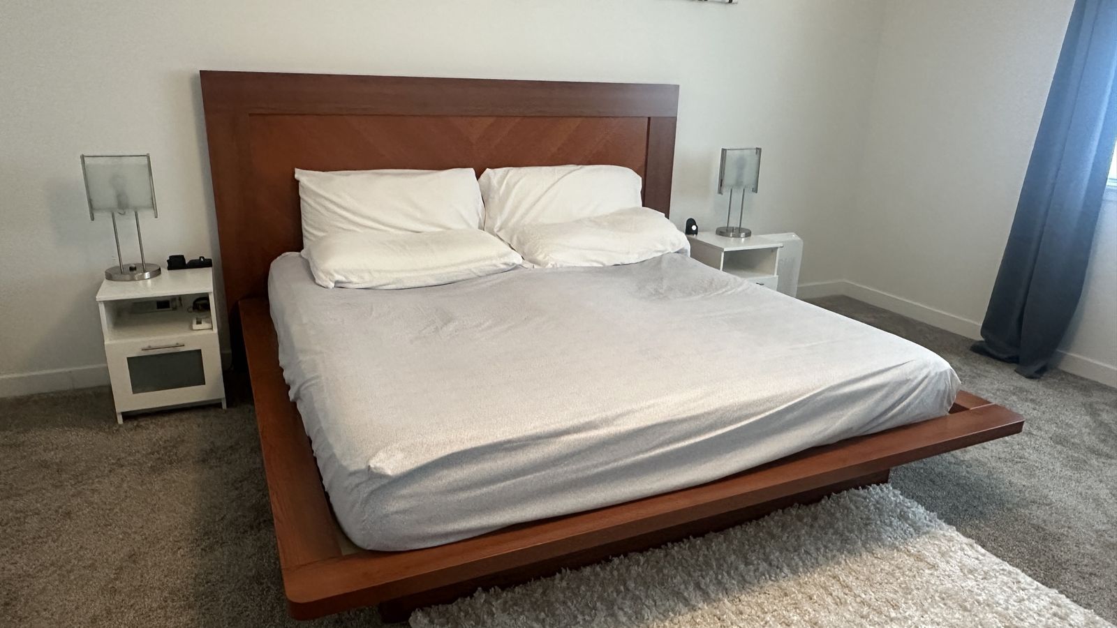 Modern platform king bed frame. Made from real wood, heavy and sturdy. Pick up only.