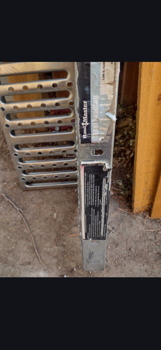 Selling a solid pair of heavy-duty steel loading ramps. These are great for loading ATVs, dirt bikes, lawn mowers, or equipment into a truck or trailer. ️ Strong steel construction ️ Perforated design for traction ️ Hook ends for secure loading ️ Sold as a pair Condition: Used but in good shape. No major bends, still sturdy and ready to use. Perfect for landscaping, hauling, or weekend toys. Price: $150 OBO