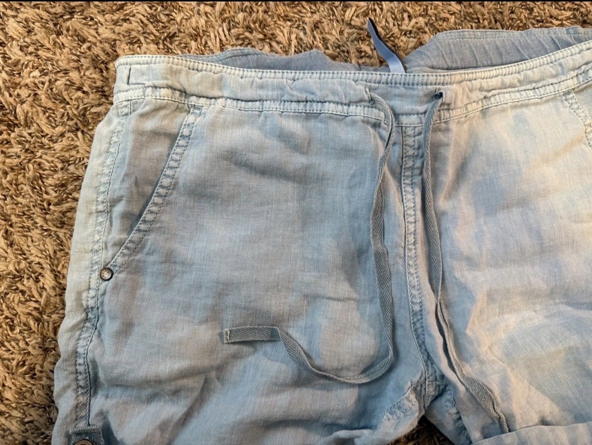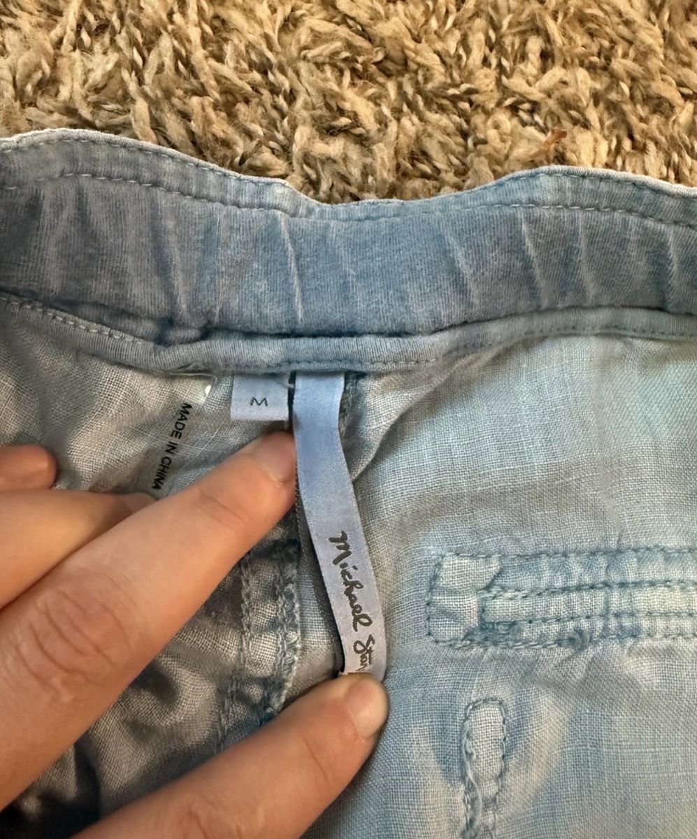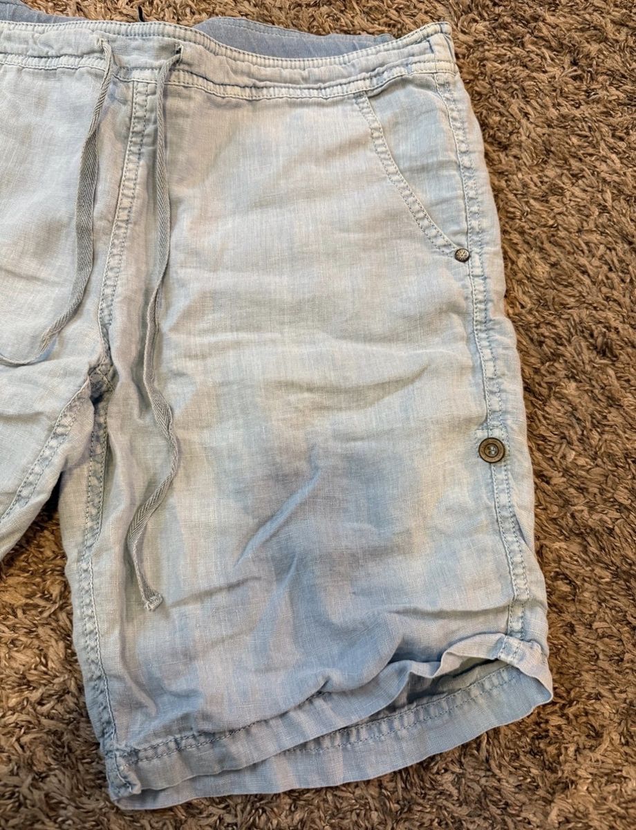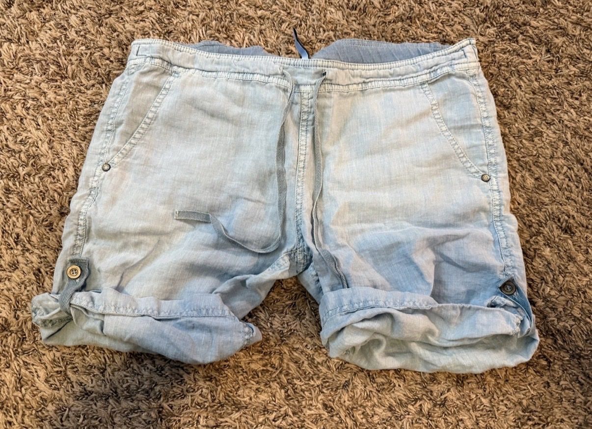 ApplePayMichael Stars blue linen summer shorts with pockets and waist tie and ties to make them shorter little stretch in the waist band size medium