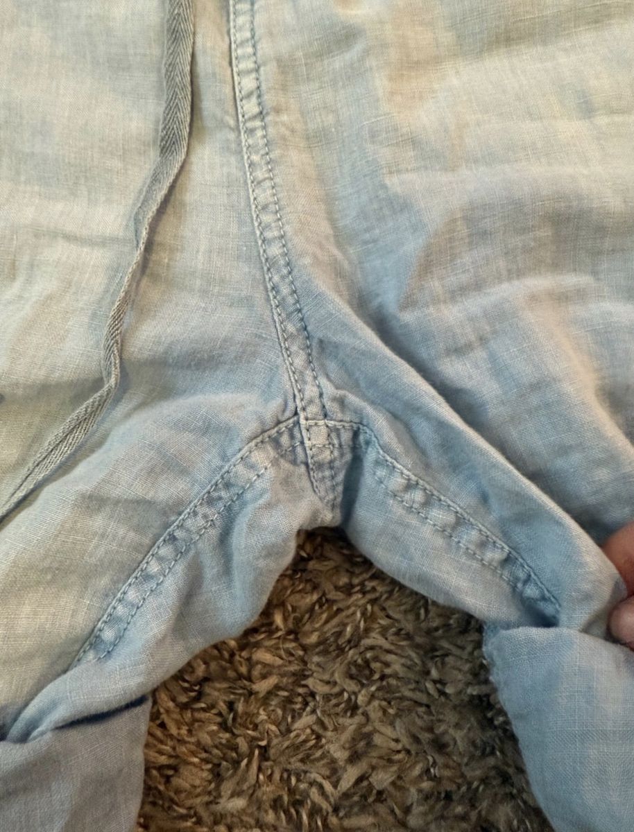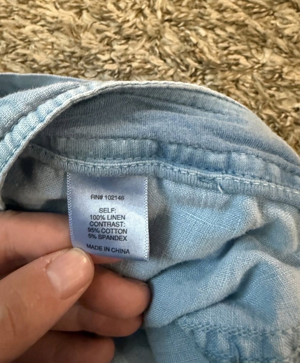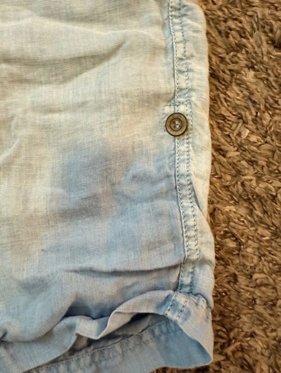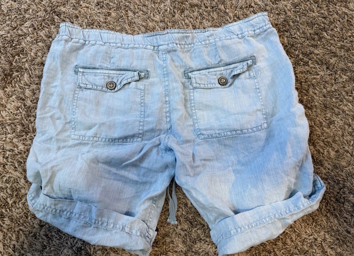 ApplePayMichael Stars blue linen summer shorts with pockets and waist tie and ties to make them shorter little stretch in the waist band size medium