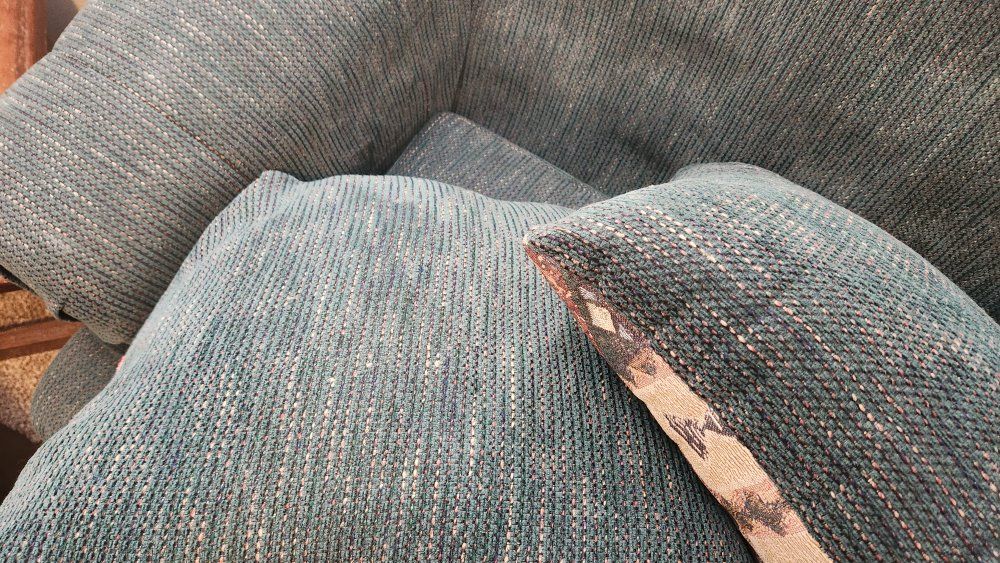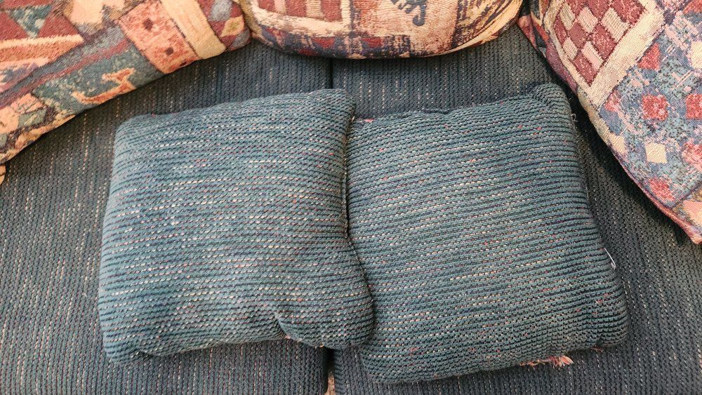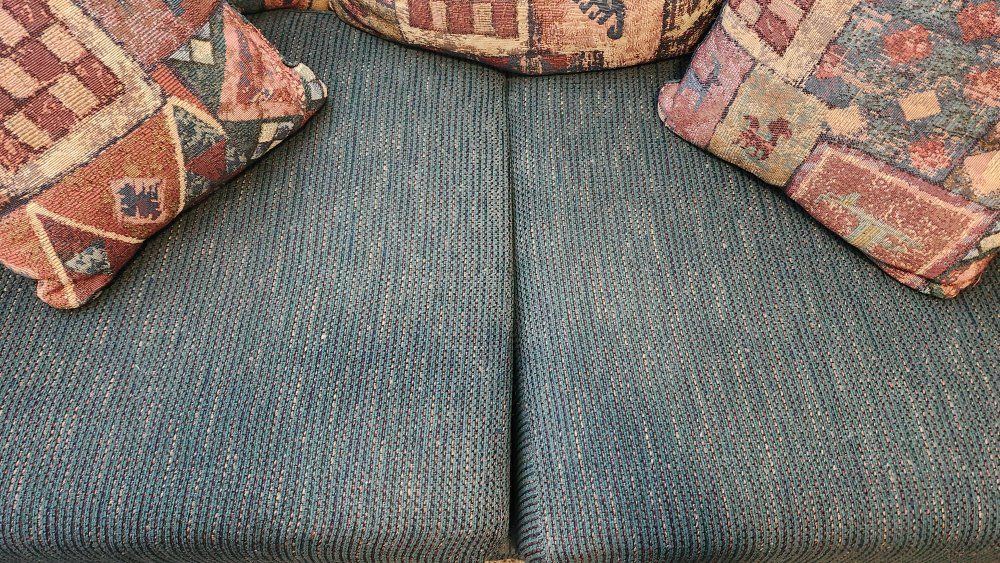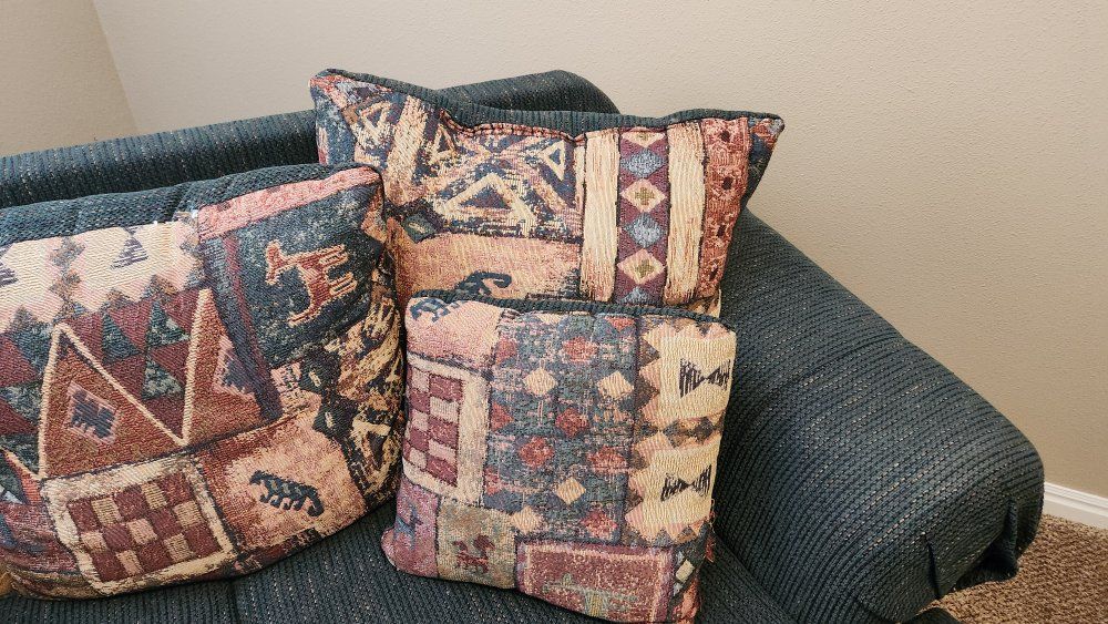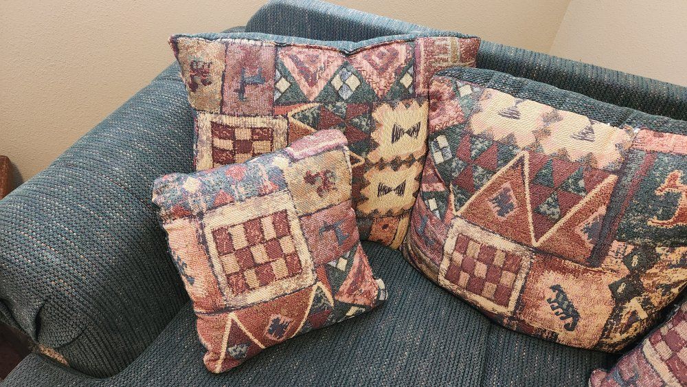 VenmoWell taken care of Loveseat Bluishgreen color. 3 big pillows 2 little pillows. Pillows and cushion are NOT attached made for easy cleaning. No ripping or tears. Comes from a smoke & kid free home.