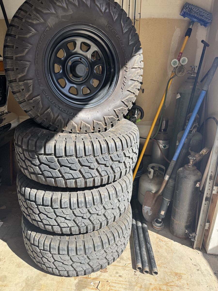 For sale I have a set of repulsor tires on 17” steel wheels, they are 35x12.5r17 with a 5x5 or 5x127 lug pattern tires are basically brand new have about a thousand miles on them just decided to go back to my other wheels and tires asking $800 obo