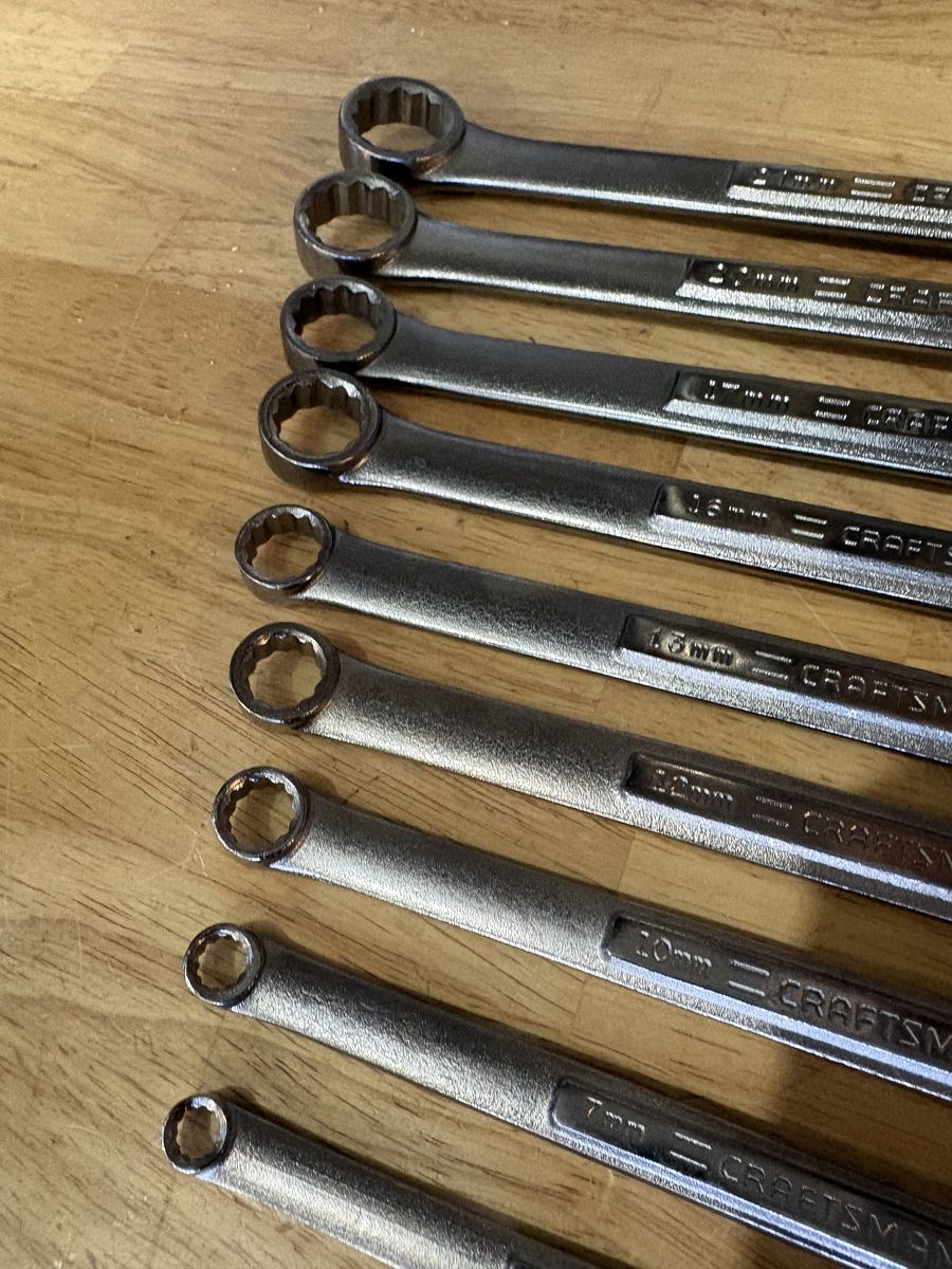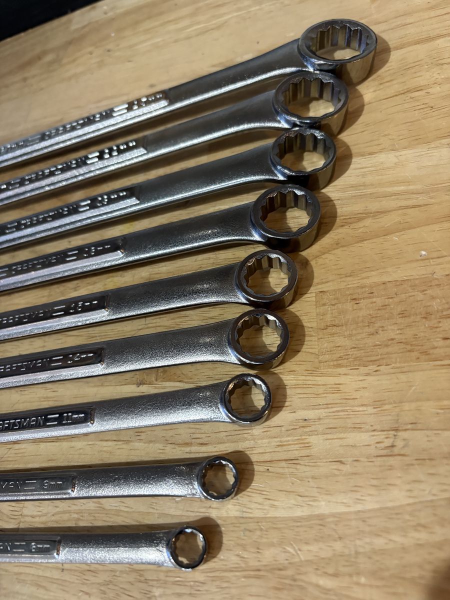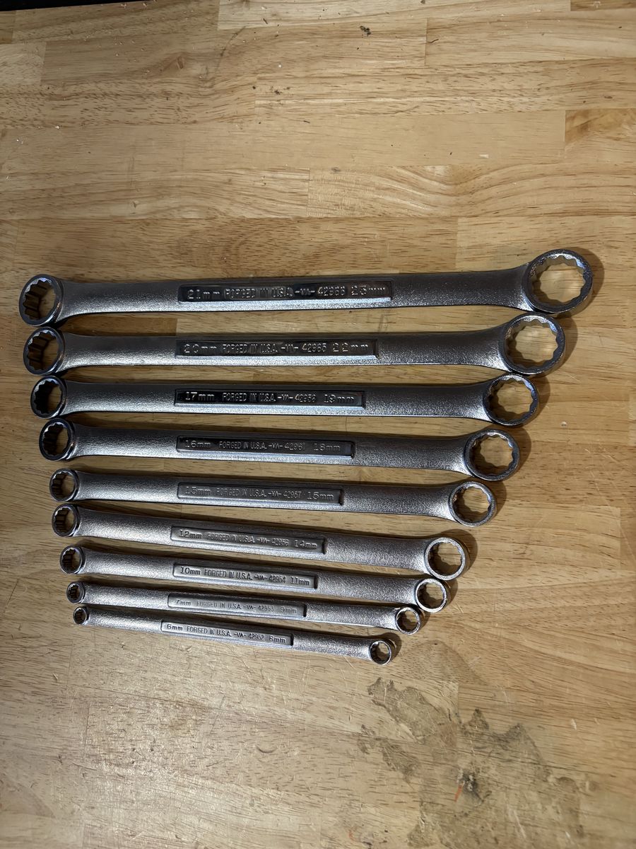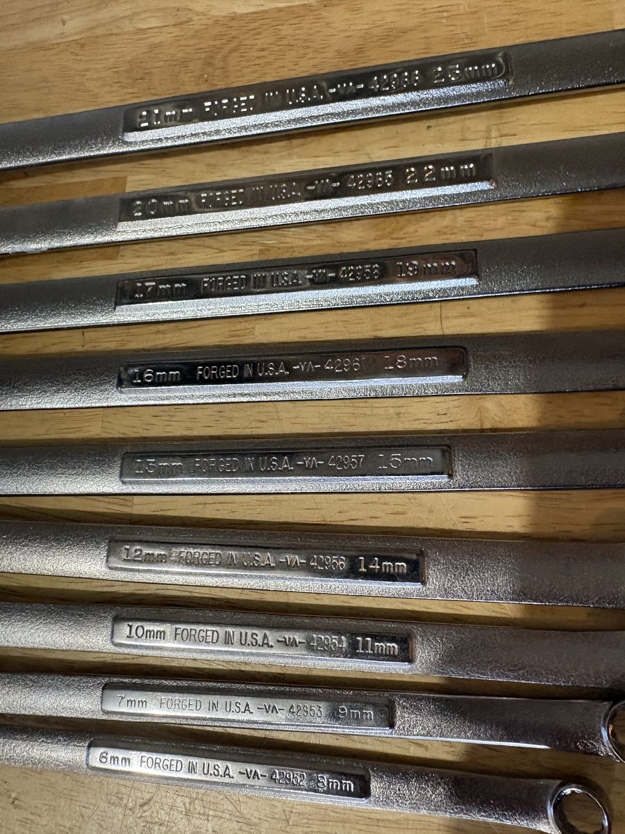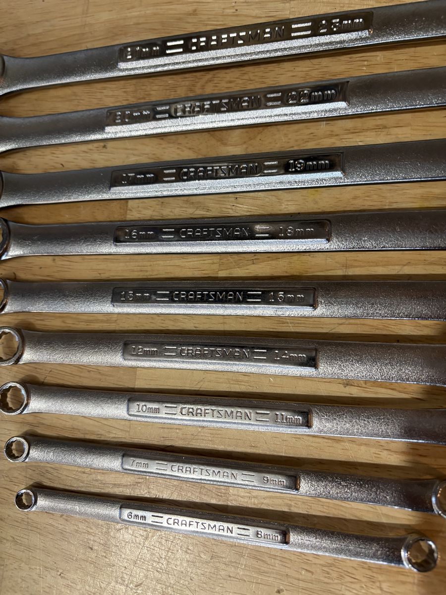 PayPalCraftsman forged in USA metrix box end wrench set 9 pieces ranging from 6 mm to 23 mm. Excellent like new condition.