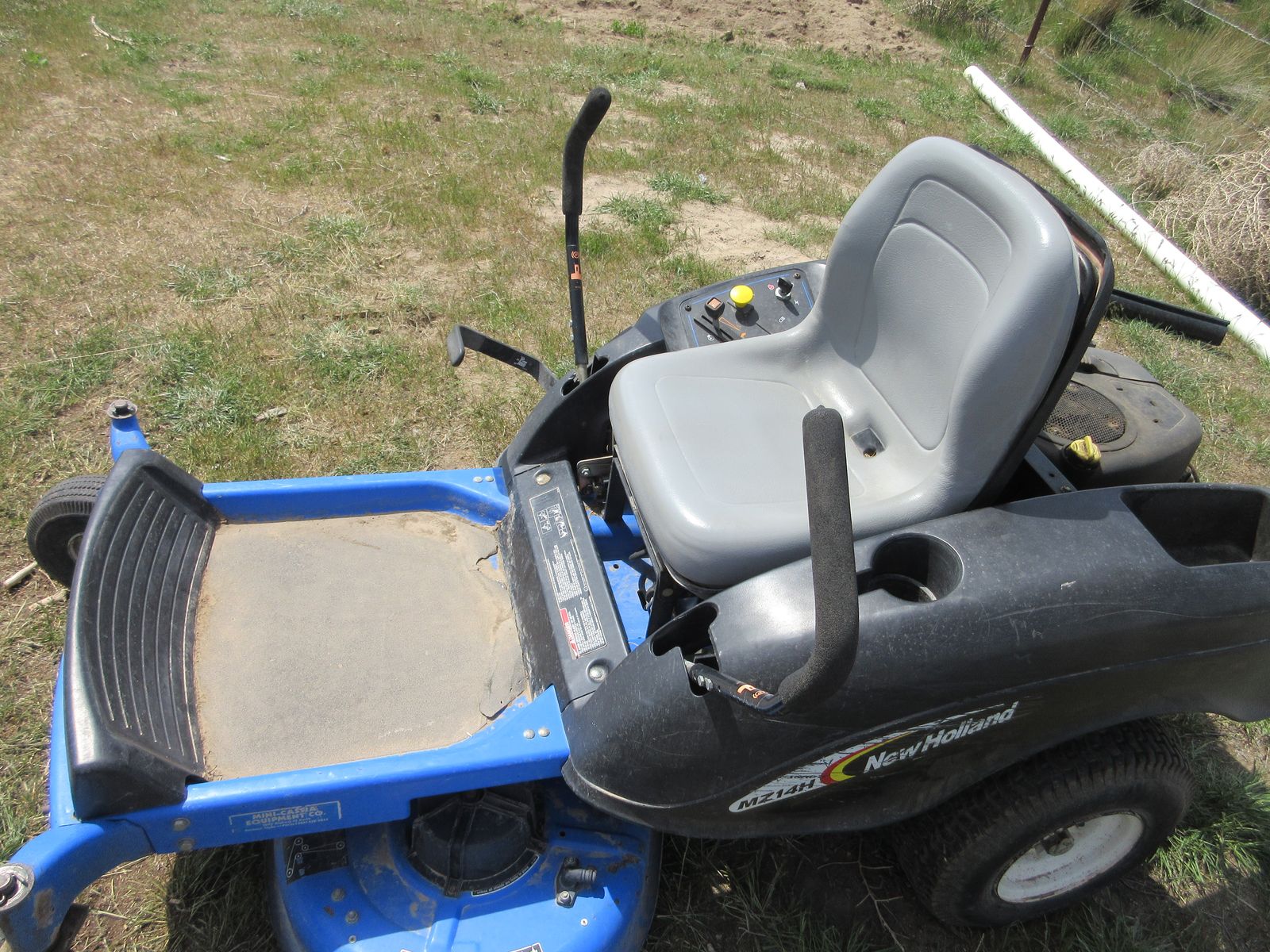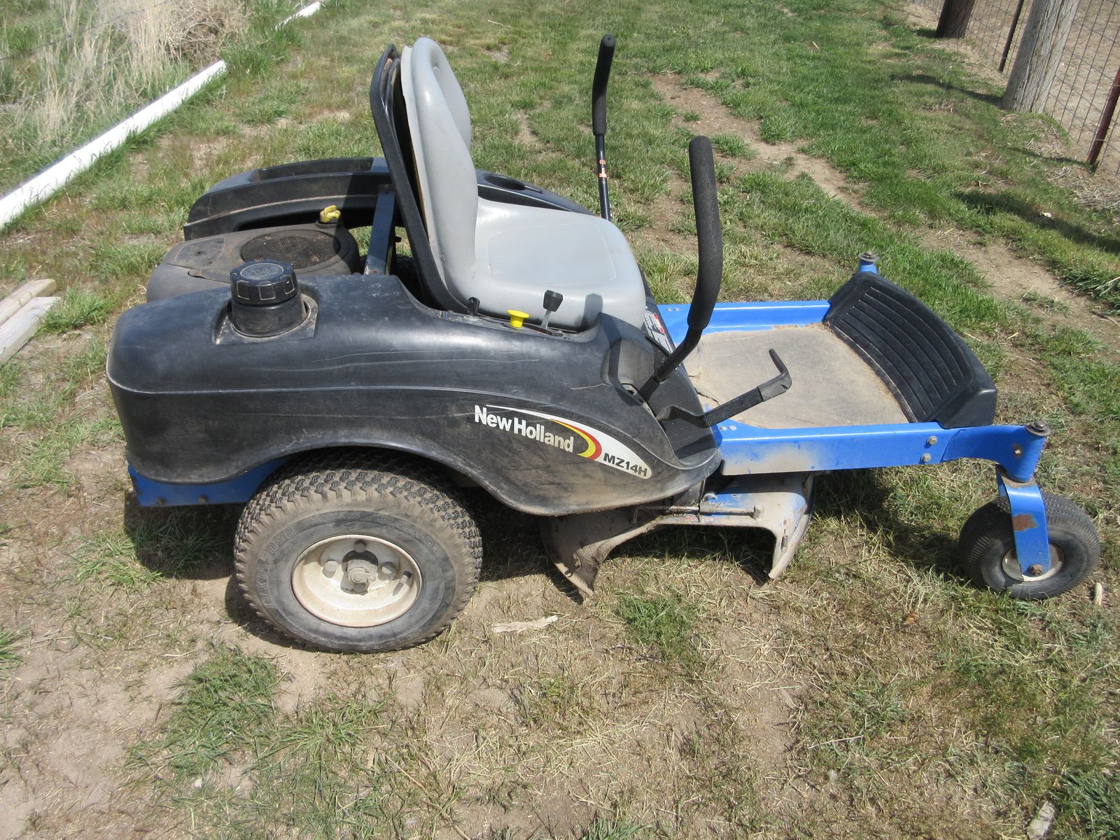 New Holland ZeroTurn Mower. Mower has been running great, but just took it out this season and one of the mowing arms is not working. I have too many projects to try and take the time to fix this. This is the Model # 725057006. Lots of good left in it.