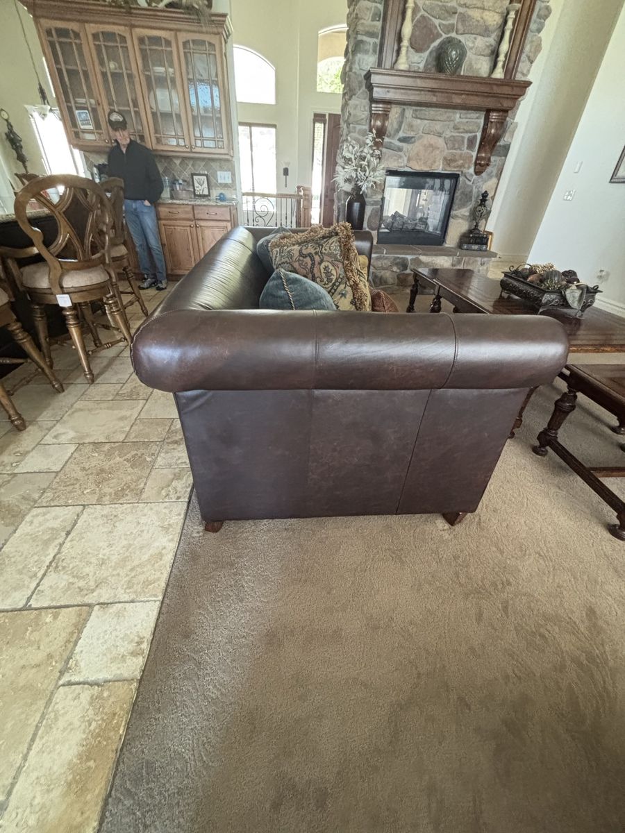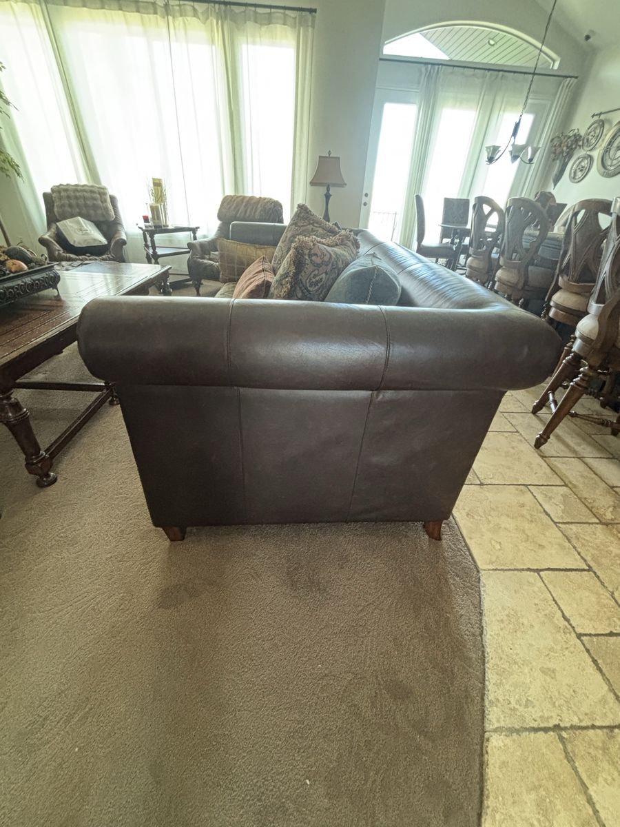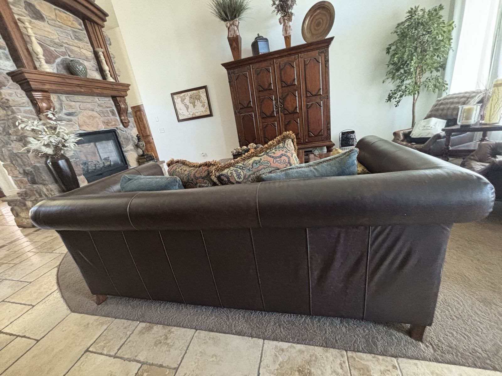 ApplePayLeather couch with upholstery seat cushion and matching pillows. 89” Long 43” deep and 3 feet high.