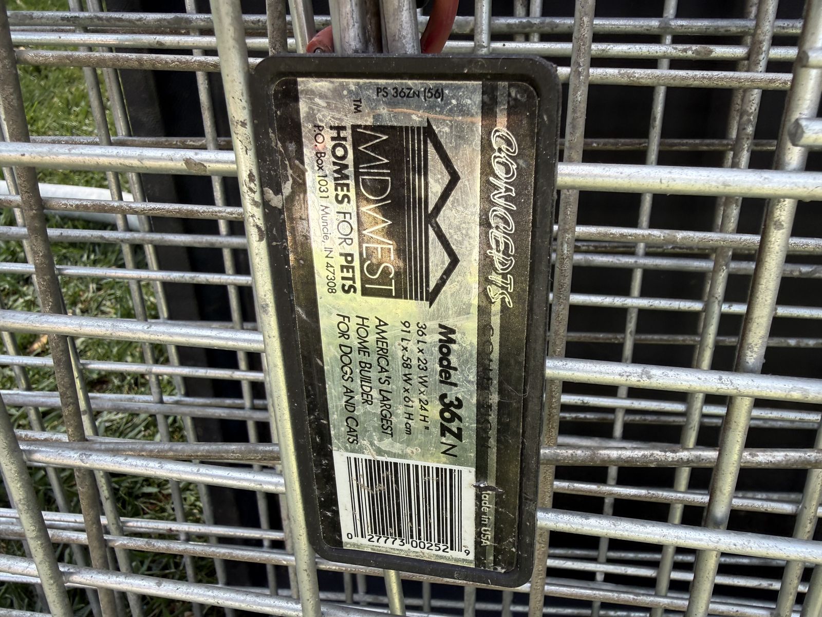 Easy to transport dog crate with a plastic bottom. 24" wide, 36" long by 2' tall. Good condition