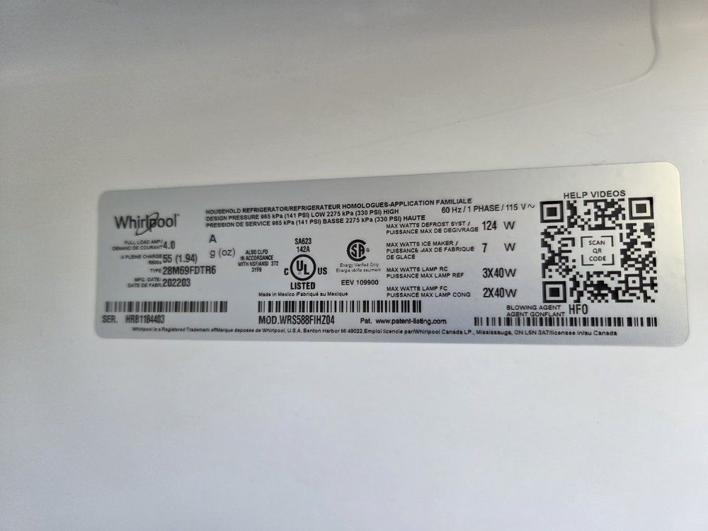Very nice Whirlpool 28 cu Side by Side. Bought in 2023 for $1600. Needs work on the icemaker, otherwise runs great!