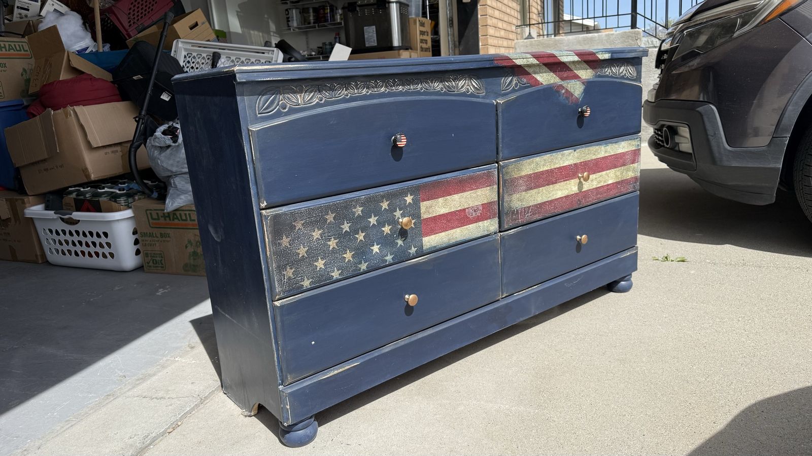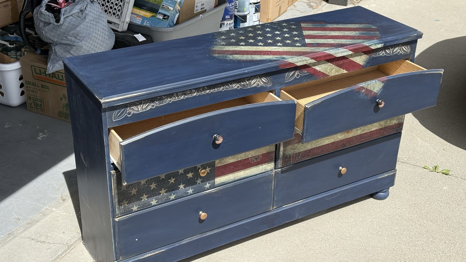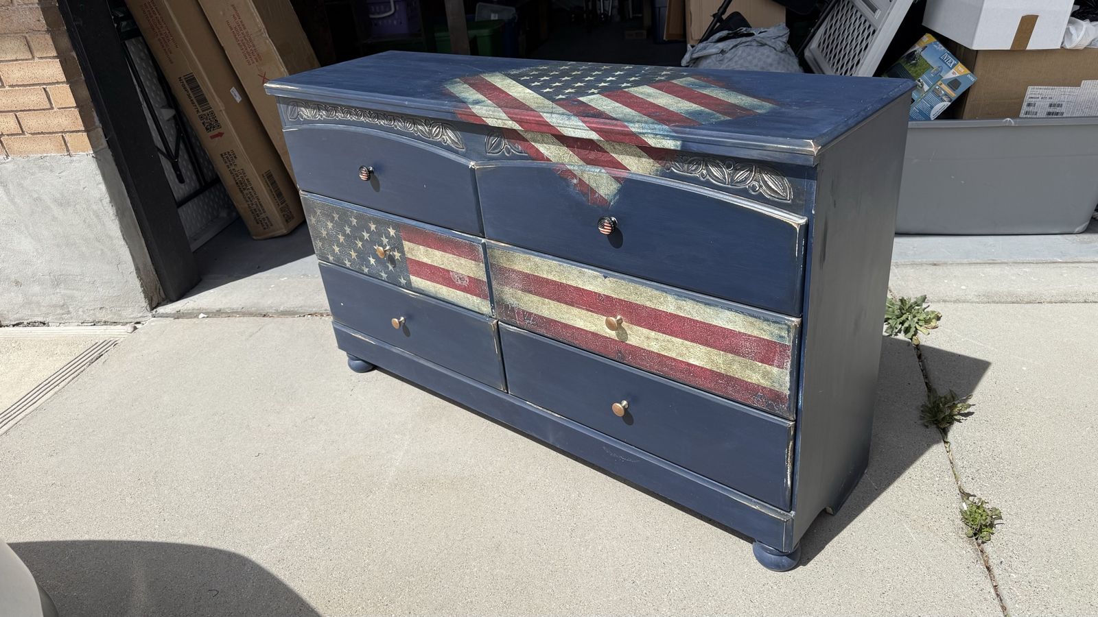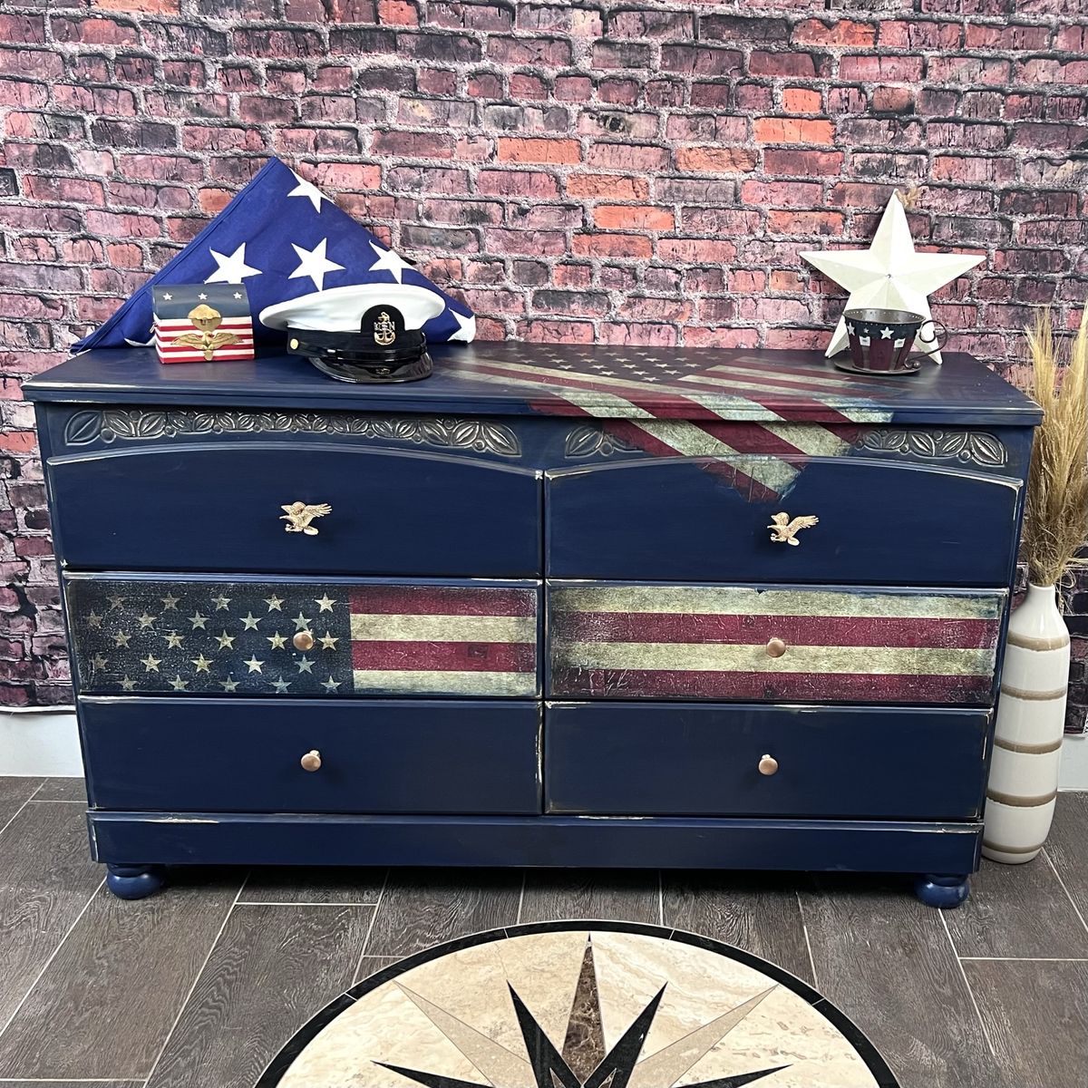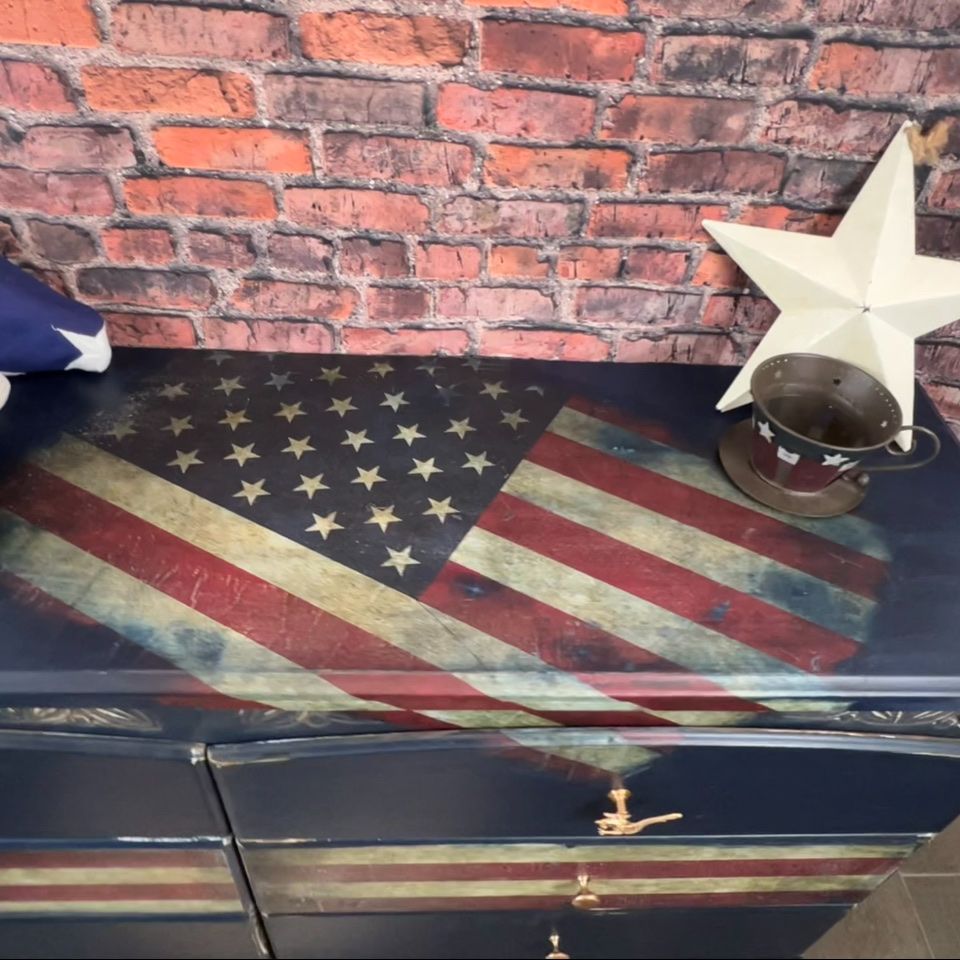 ApplePayCustom America Flag Dresser by Renew the Past artist Kristi Corvin. Distressed look. Large flag is decoupage.