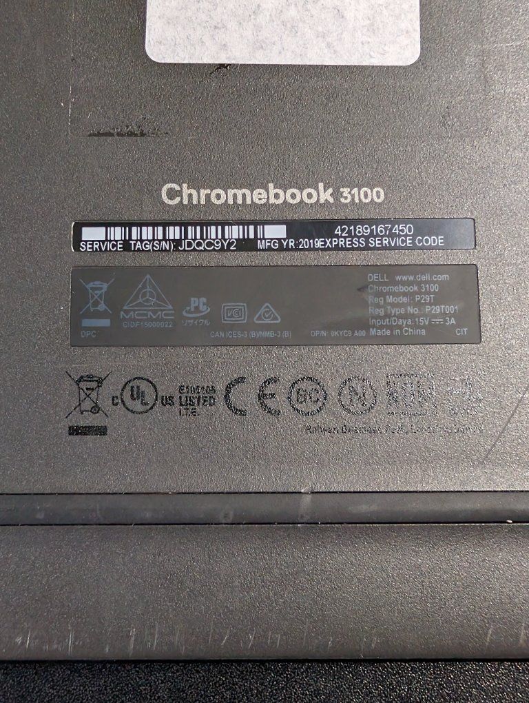 ZelleBrand: Dell Model: Chromebook 3100 Service Tag: JDQC9Y2 Screen Size: 11.6" TECHNICAL STATUS Power/Testing: Powers on. The internal LCD is broken and does not display a clear image. Internal Components: This unit is MDM Locked (Enterprise Enrolled) and cannot be bypassed for personal use. Operating System: ChromeOS. Condition: For Parts / Not Working. Sold strictly as-is for donor parts or repair. PHYSICAL CONDITION The external casing shows significant signs of use including heavy scuffs and surface scratches on the lid and bottom panels. The internal LCD is cracked and broken. The keyboard and trackpad are present and show moderate wear from handling. INCLUDES Chromebook unit only. NOT INCLUDED USB-C charging cable, power adapter, or original packaging. NOTE Sold AS-IS with no returns. This unit is both MDM locked and has a broken display. It is intended for professional technicians needing a donor keyboard, hinges, or internal battery.