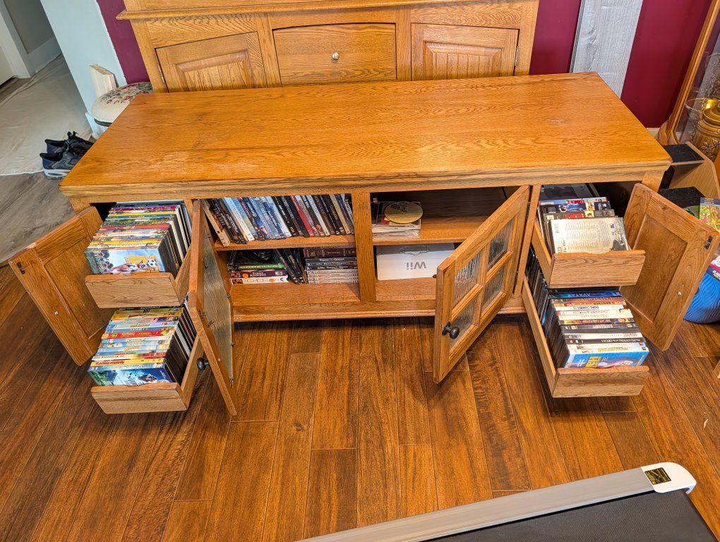 Venmowe no longer need this cabinet. it's solid oak so it's heavy. it does need to be refinished.