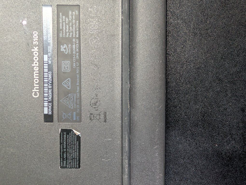 ZelleBrand: Dell Model: Chromebook 3100 Service Tag: 6YV2M63 Screen Size: 11.6" TECHNICAL STATUS Power/Testing: Powers on and is fully functional. The display, keyboard, and trackpad are all in working order. Internal Components: This unit is MDM Locked (Enterprise Enrolled). It cannot be bypassed for personal use and is intended for parts reclamation. Operating System: ChromeOS. Condition: For Parts / Not Working. Sold strictly as-is for donor parts due to the management lock. PHYSICAL CONDITION The front display is in good working condition with no visible cracks or dead pixels. The external casing shows moderate signs of use including scuffs, surface scratches, and sticker residue on the lid and bottom panels. The keyboard and trackpad are intact and show normal wear from student use. INCLUDES Chromebook unit only. NOT INCLUDED USB-C charging cable, power adapter, or original packaging. NOTE Sold AS-IS with no returns. While the hardware is fully functional, the MDM lock makes this unit ideal for a technician needing a working LCD screen, keyboard assembly, or internal battery.