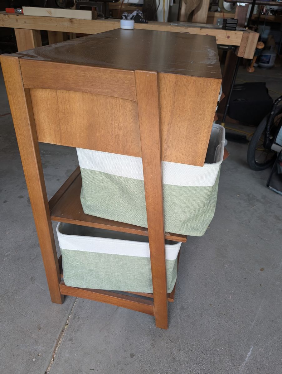 VenmoBeautiful William Sonoma Changing Table ..comes with 6 green baskets pictured. Slight damage on top shelf from attempting to step on it once. But baskets hide damage when in use.