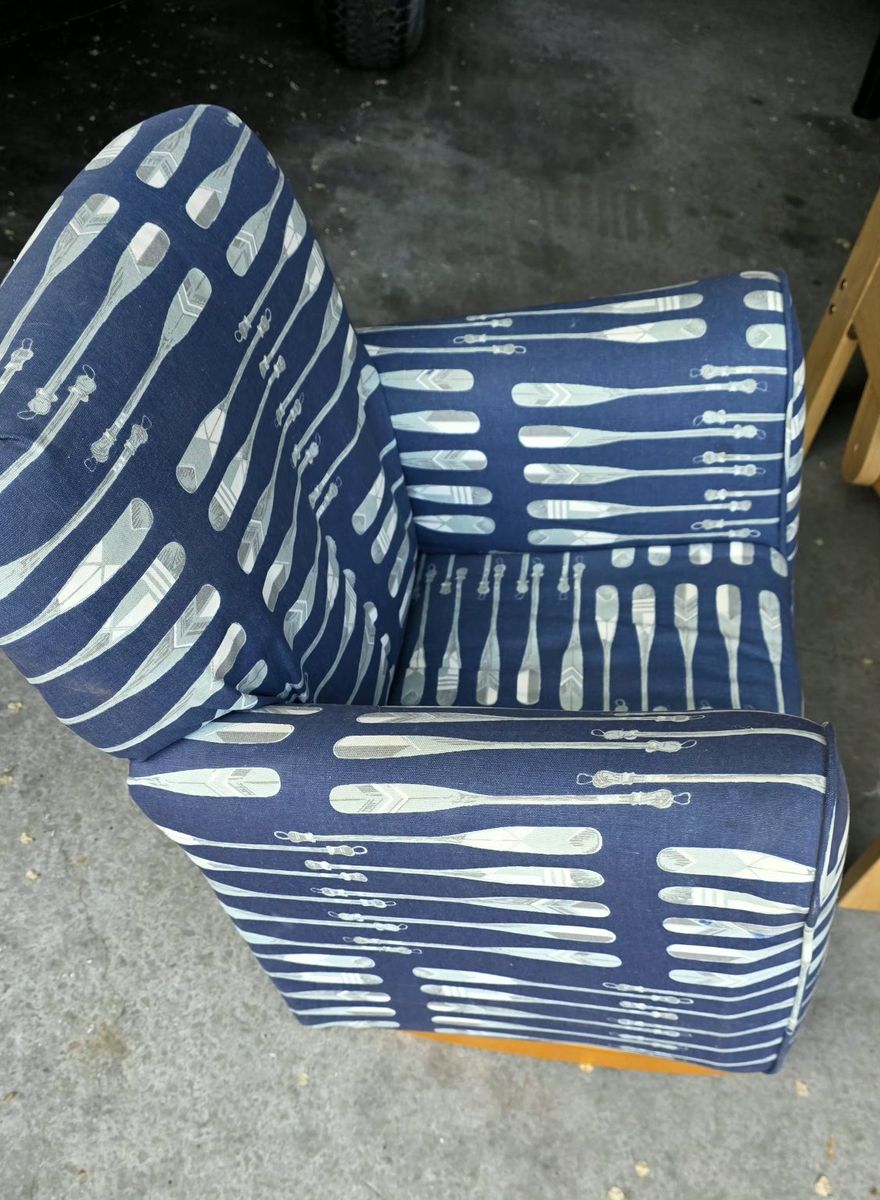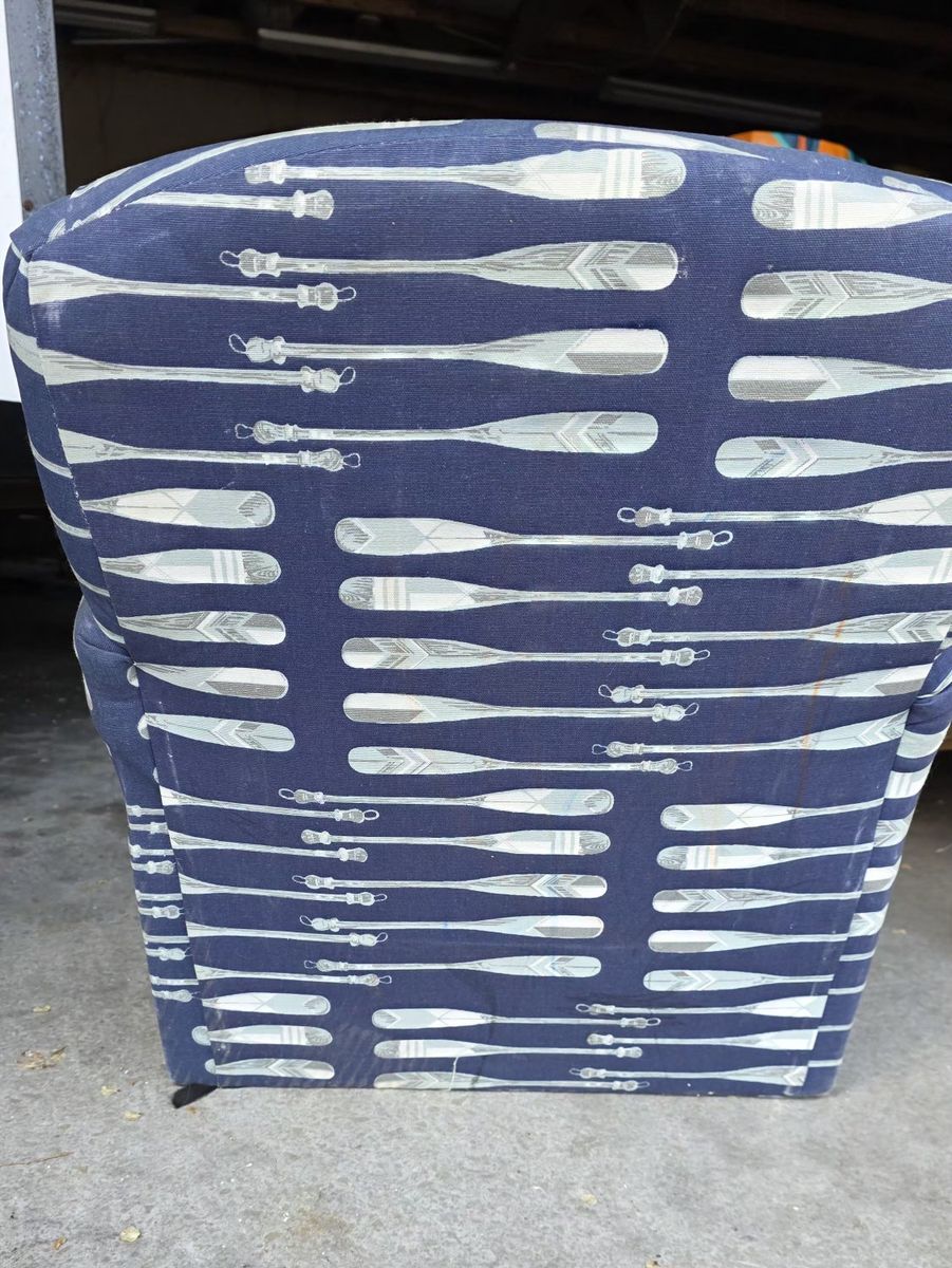 VenmoBlue upholstered boat oar patterned rocking chair for children. It does have some coloring marks on the back pictured in the last photo. Pickup only please. Cash or venmo accepted. Smoke-free pet friendly home.
