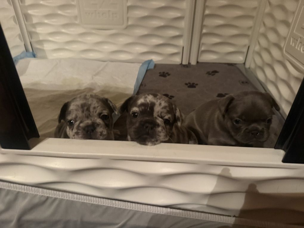 VenmoAKC registered French Bulldog puppies Born March 3 2026, will be ready for their forever homes around April 28th. They have had their dewclaws removed and their first set of shots. These babies have been handled and played with from day one and have the sweetest little personalities! Their mom is a blue Merle that weighs 26 lbs she is smaller with a more athletic build. Dad is a lilac and tan micro mini frenchie that only weighs 22 lbs and has a stockier build, so these babies should be on the smaller side. Dad also carries the fluffy gene so his fur is soft like a puppy even as an adult, both parents are on site. $200 deposit required to hold the puppy.