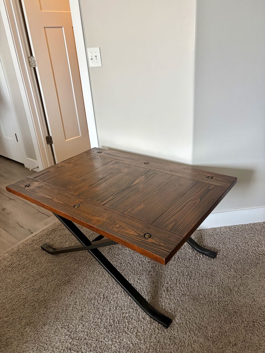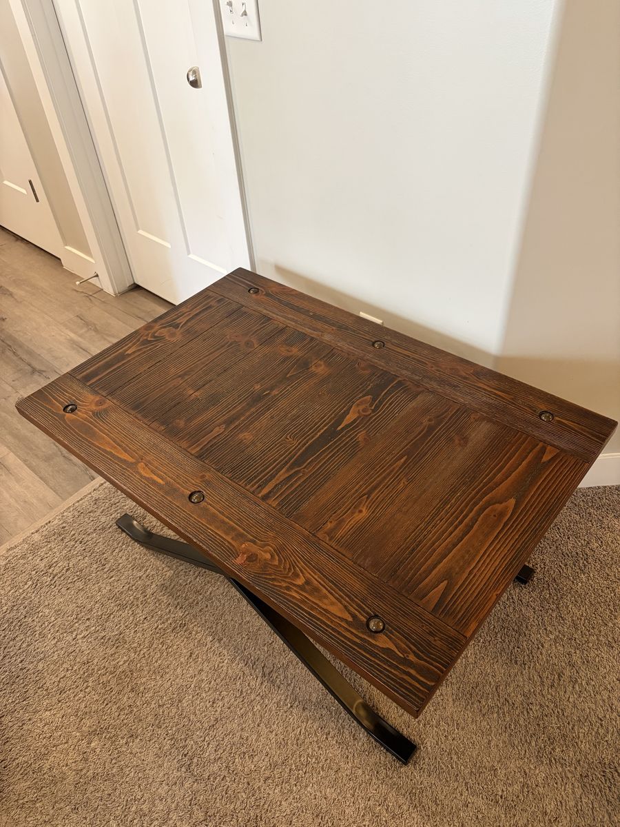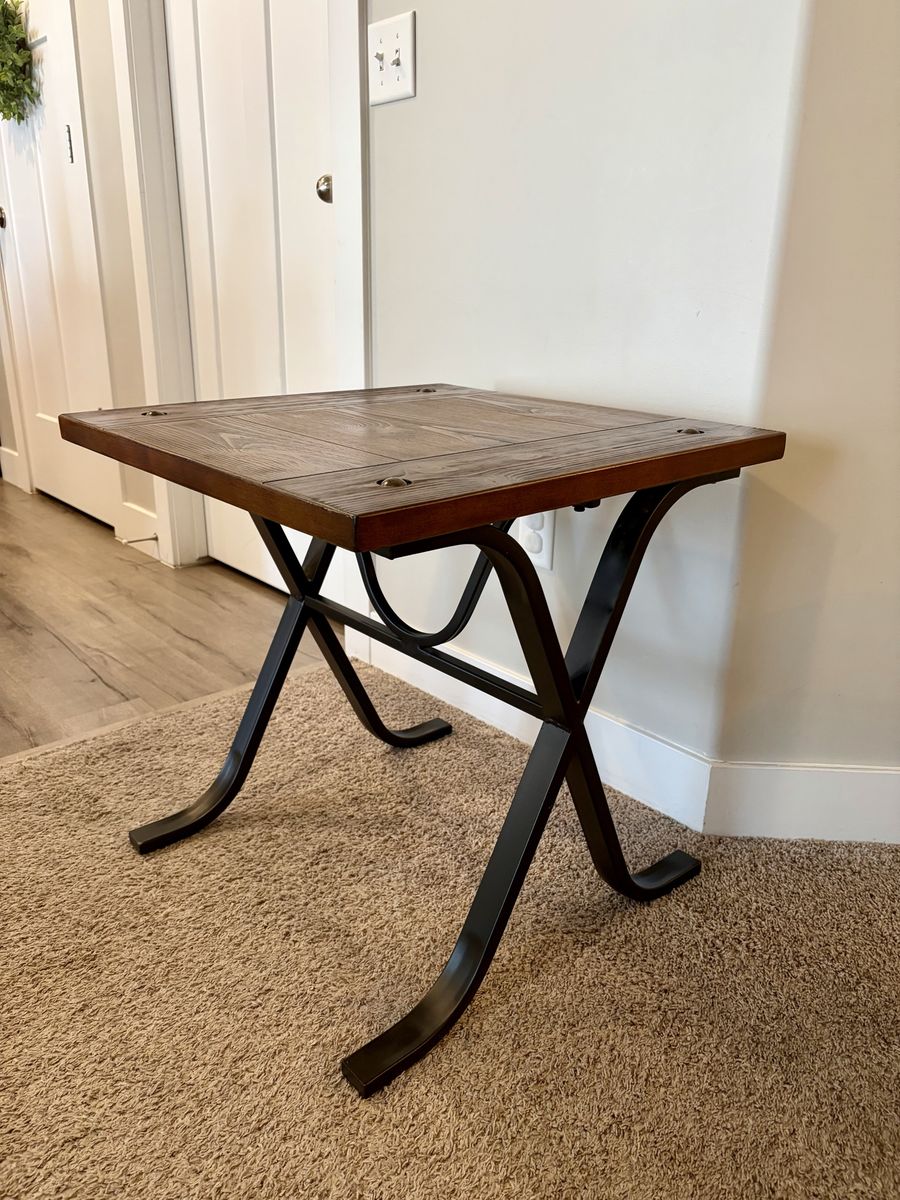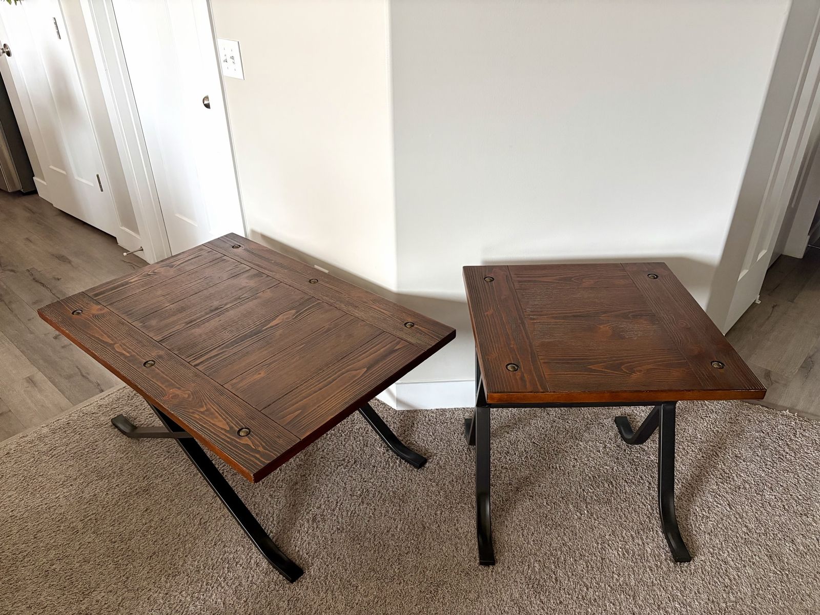 VenmoSelling this rustic rectangle coffee table and square end table set. Wooden table tops with black metal legs. Both are still in great shape and have been well taken care of. It was just time for us to get something new!