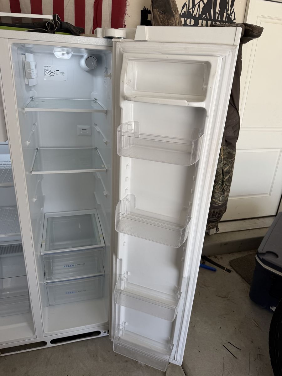 Selling a Frigidaire side-by-side fridge/freezer. Clean and in good working condition. Currently set up in garage and ready to go.