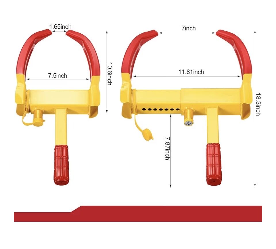 2 Pcs Wheel Lock for Cars, Heavy Duty Trailer Wheel Lock Universal Security Anti Theft Tire Clamp for Vehicles Boot Camper SUV ATV Boat Motorcycle Deterrent(Red)