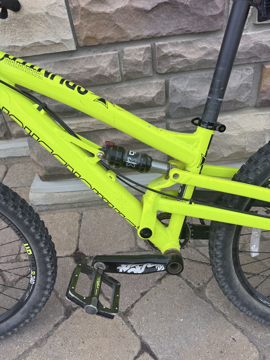 VenmoIf you’re on a youth mountain bike team, this is the ultimate bike for you! It’s essentially an adult bike for a youth. It’s amazing on the trails. It’s in great shape. Aluminum frame, single pivot 100 mm suspension, X – fusion fork, Sram X5 shifters, 11 - 36 t SRAM PG1030 cassette, 165mm crank arm, hydraulic disc brakes, Shimano M447 brake set, 24” wheels, Kenda tires. SRAM 1x10 drivetrain