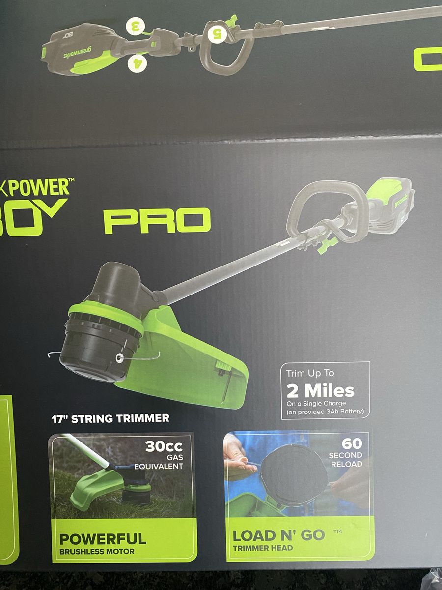 Greenworks 80v 17” String Trimmer Brand new, no battery included just the trimmer.