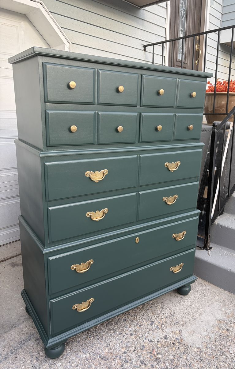 — Tall dresser with 8 drawers and bun feet