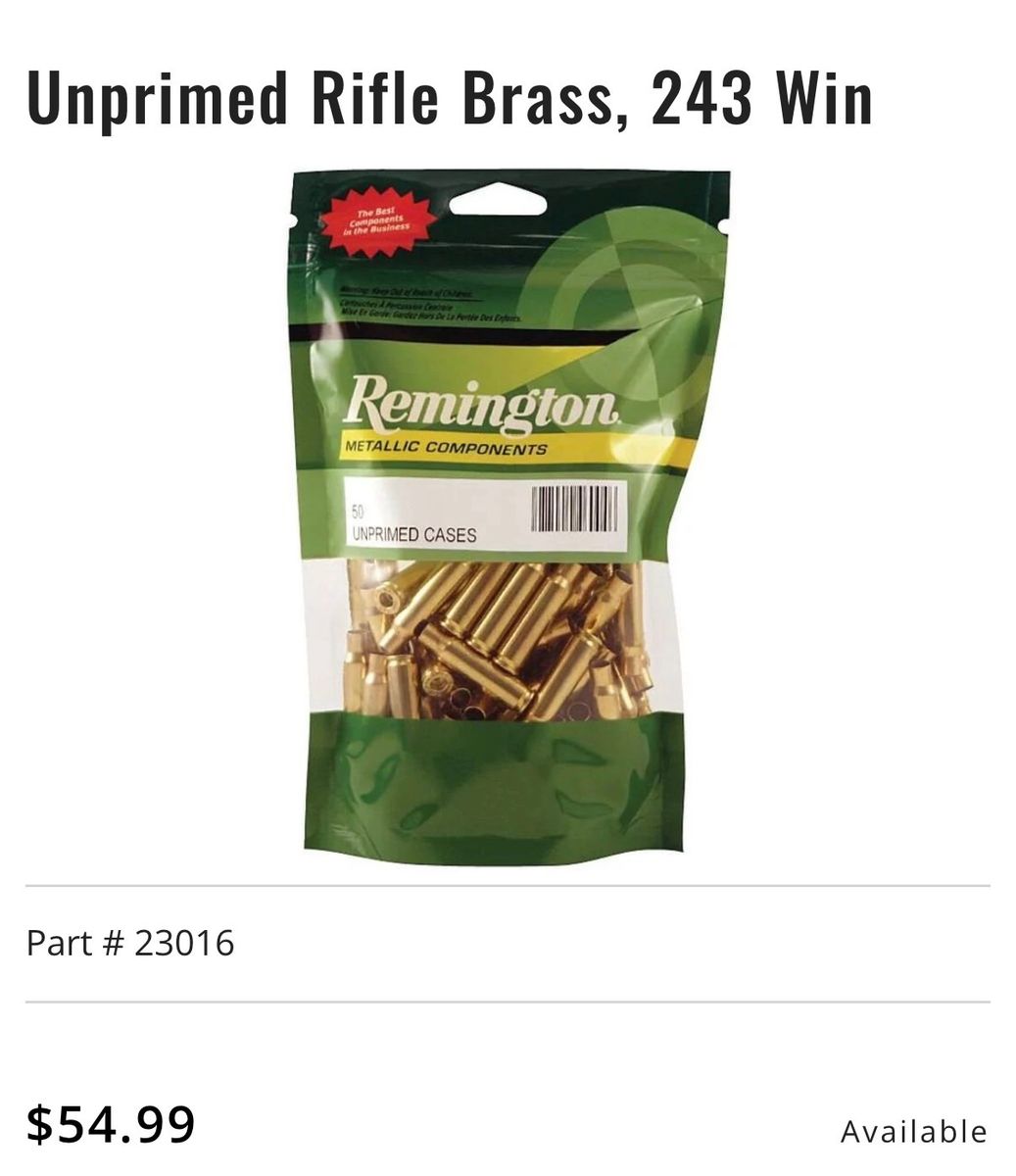 74 pieces of once fired Remington 243 Win Brass.