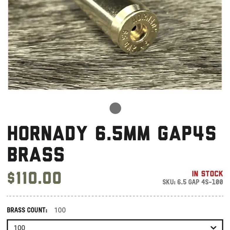 74 pieces of once fired 6.5 SAUM GAP4S (Remington Short Action Ultra Magnum) brass.