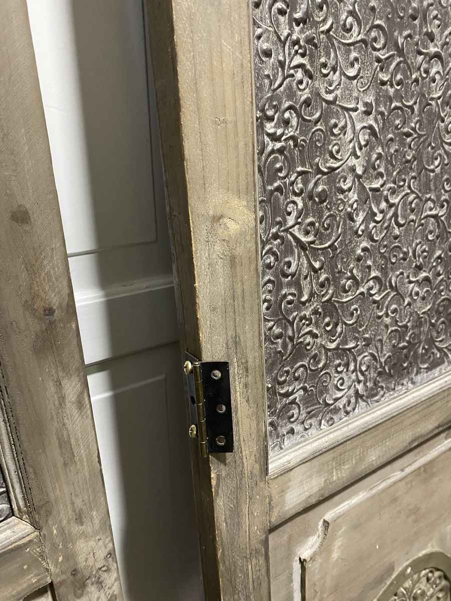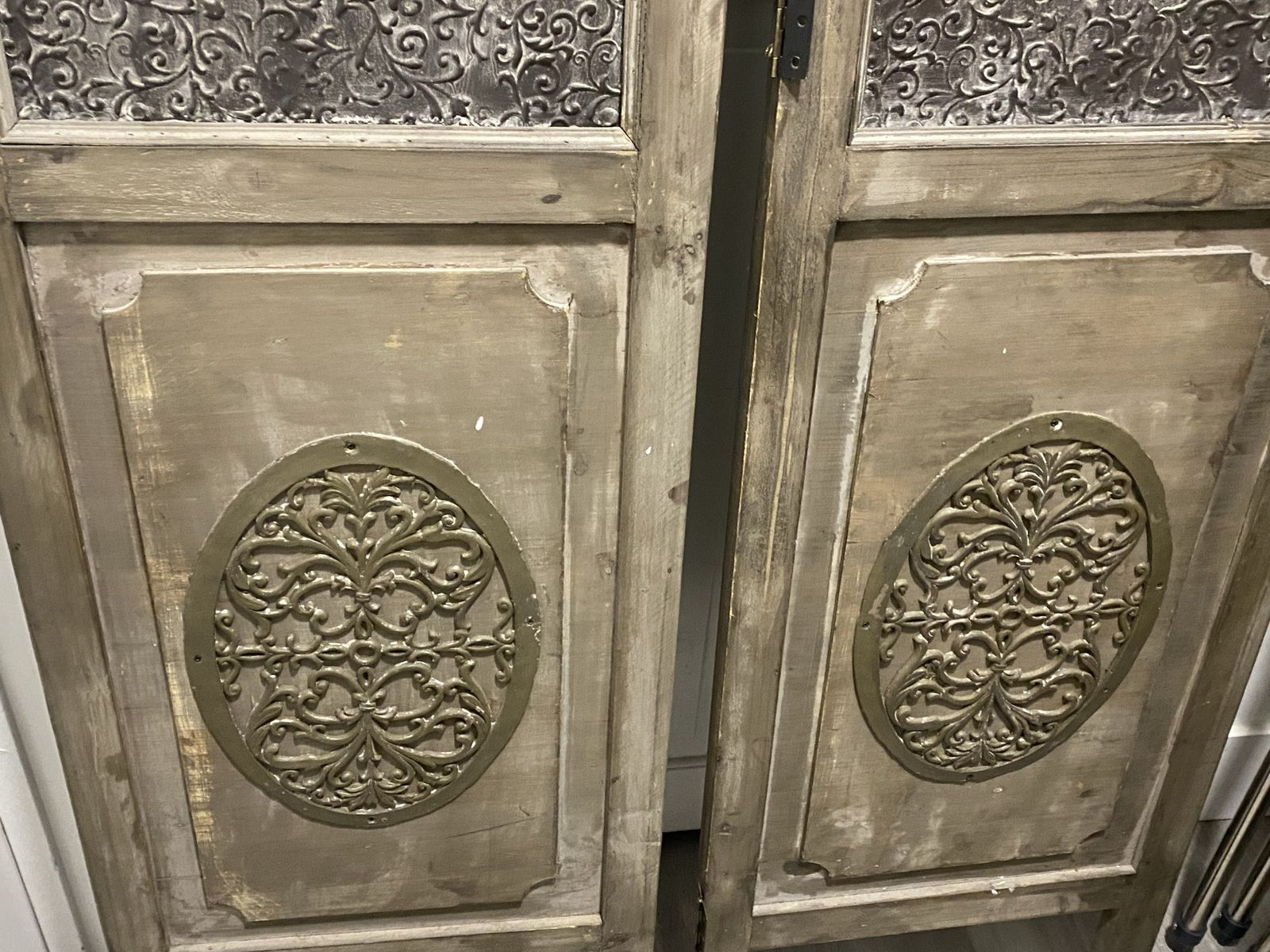 Made of wood and metal. I was using it in my basement as a decorative piece to hide my water heater.