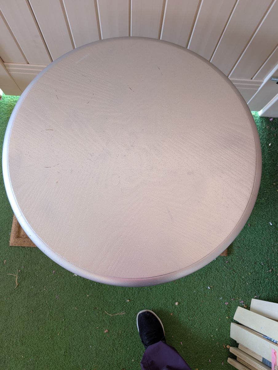 VenmoI painted this silver but it is a sturdy, decorative, oak table.